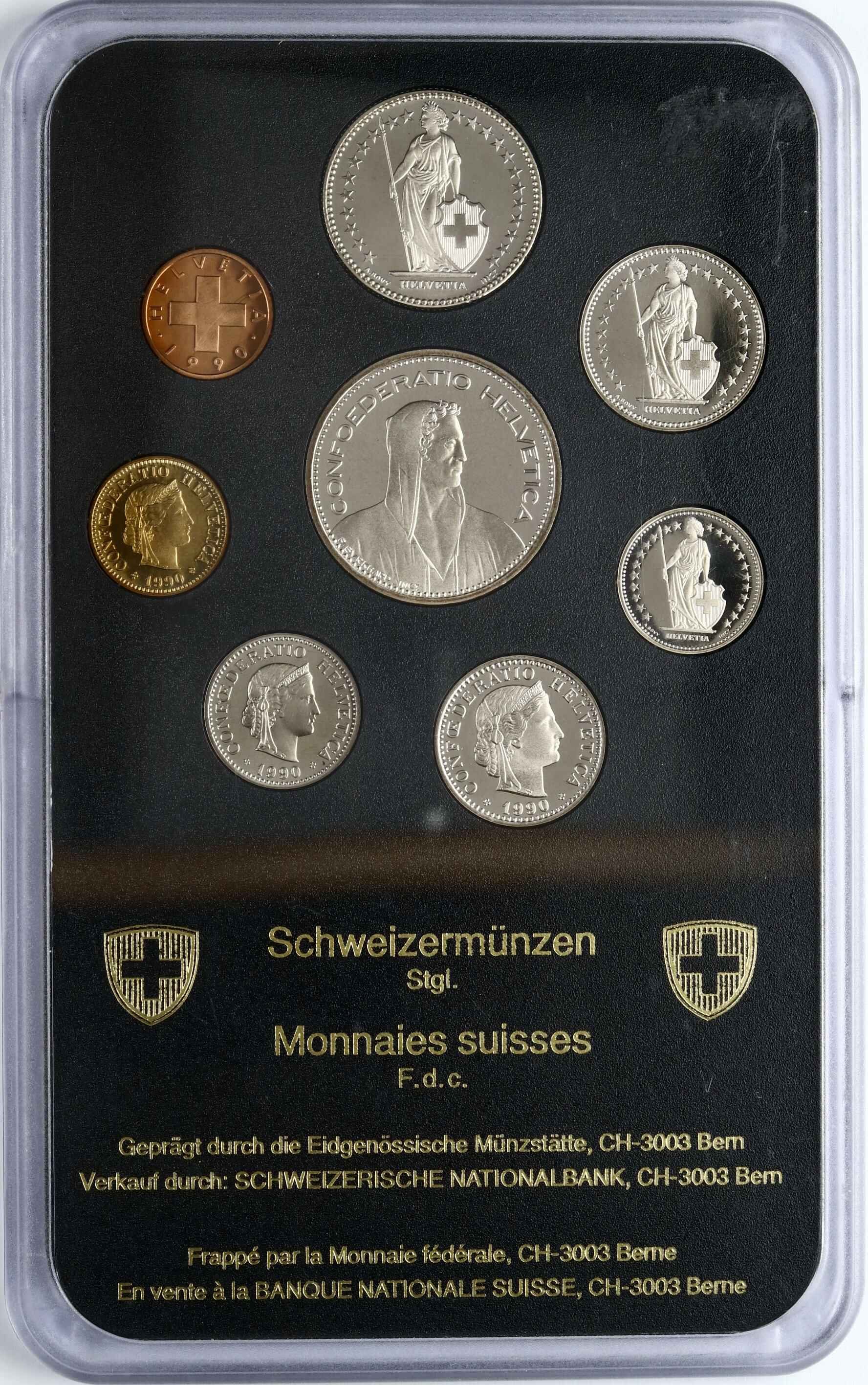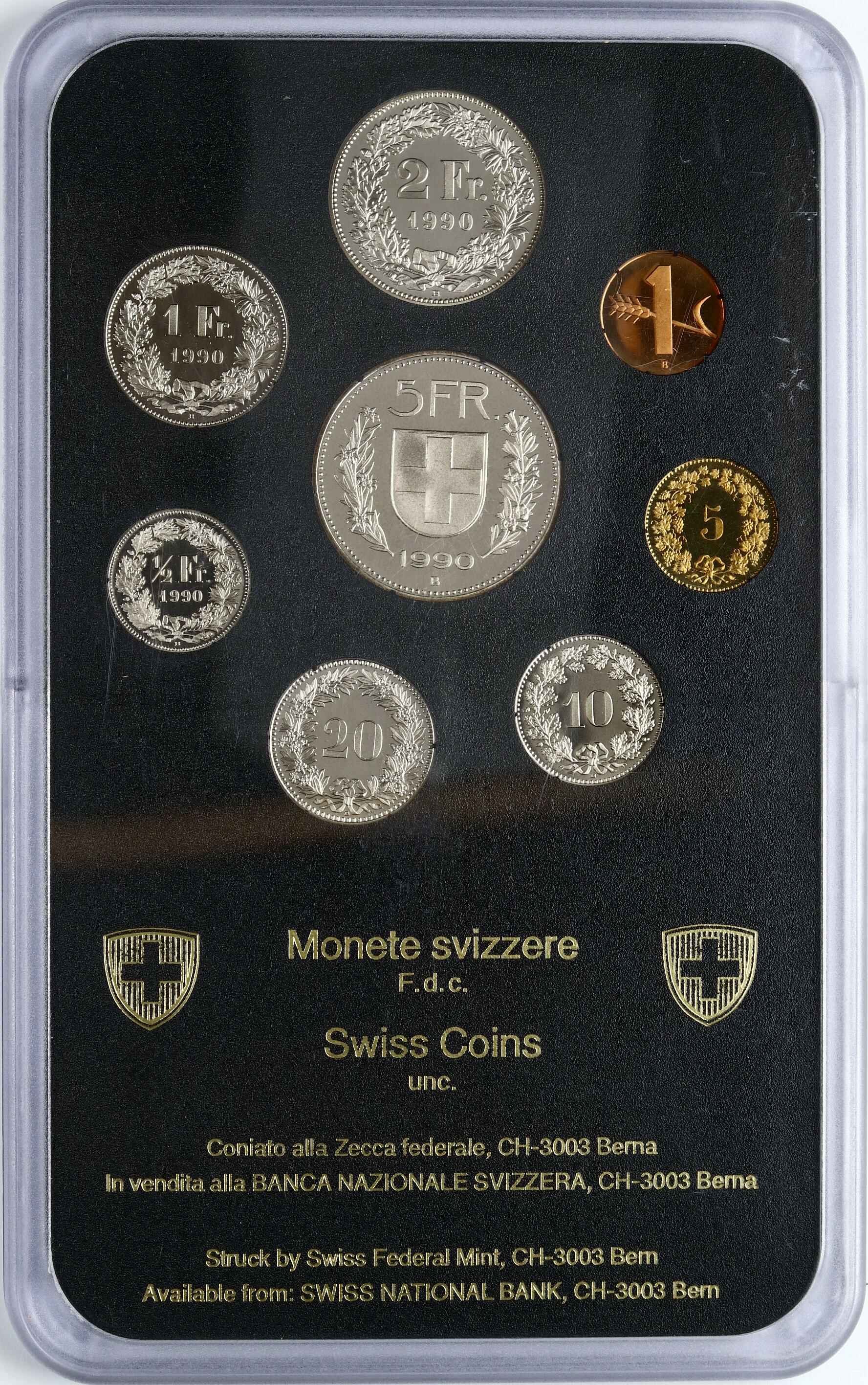 Switzerland 1 Rappen - 5 Francs 1990 Set of 8 Coins