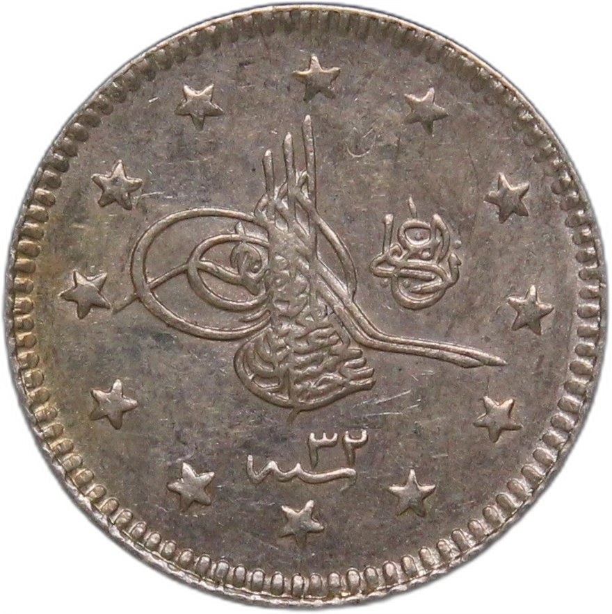 Turkey Ottoman Empire 1 Kurus 1906 (AH1293/32) Silver
