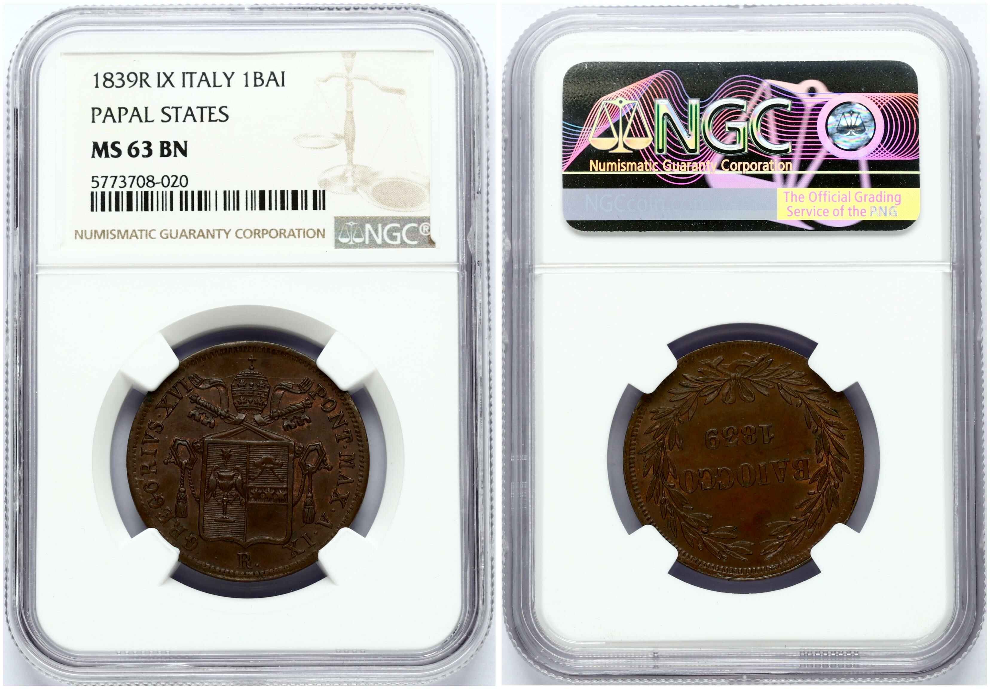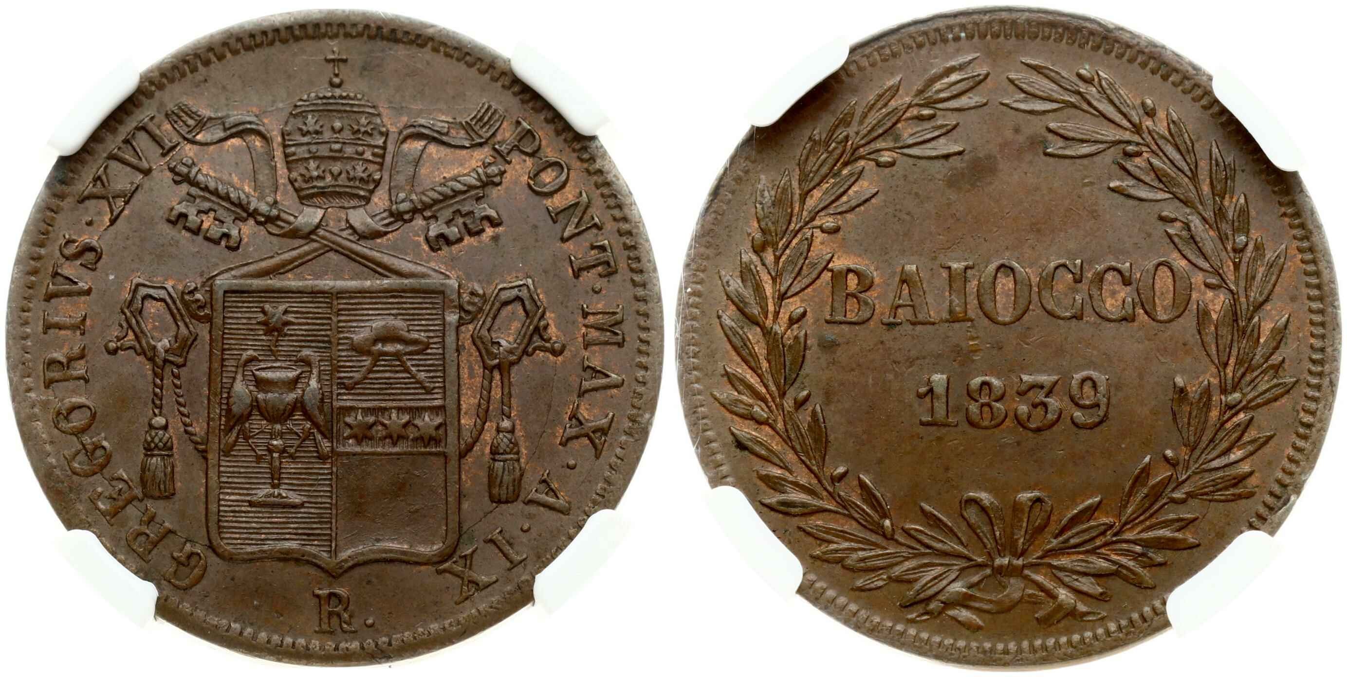 Vatican Baiocco 1839 IX NGC MS 63 BN