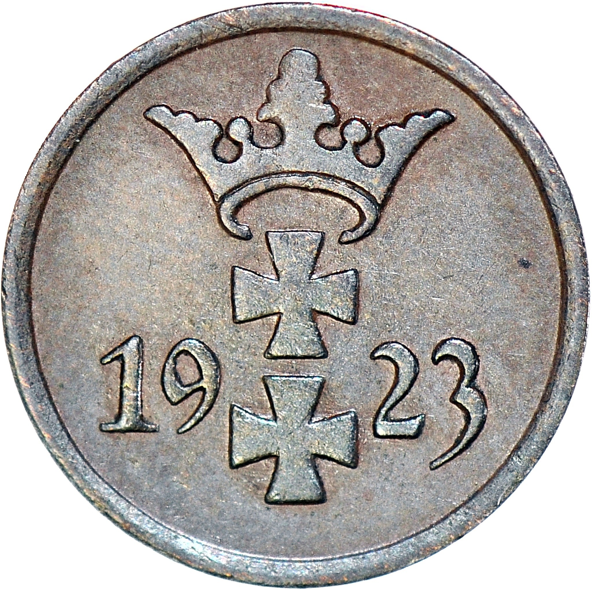 Wolne Miasto Gdańsk, 1 fenigi 1923, piękny