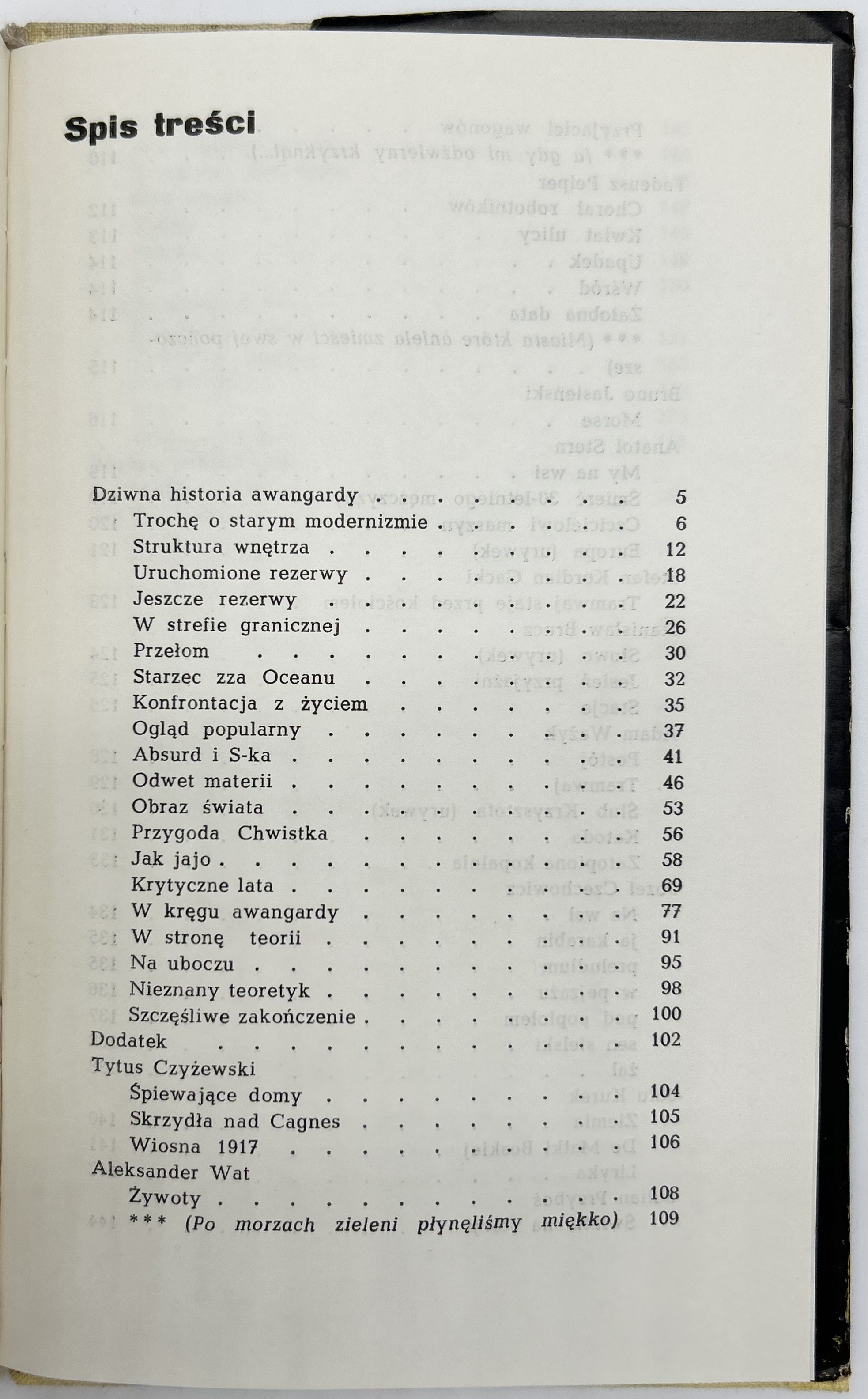Refleksja nad dziejami ruchów awangardowych w sztuce i literaturze XX wieku. Autor, sam będący uczestnikiem i świadkiem wielu artystycznych przemian, analizuje źródła, paradoksy i losy awangardy, ukazując jej ewolucję w kontekście politycznym i społecznym