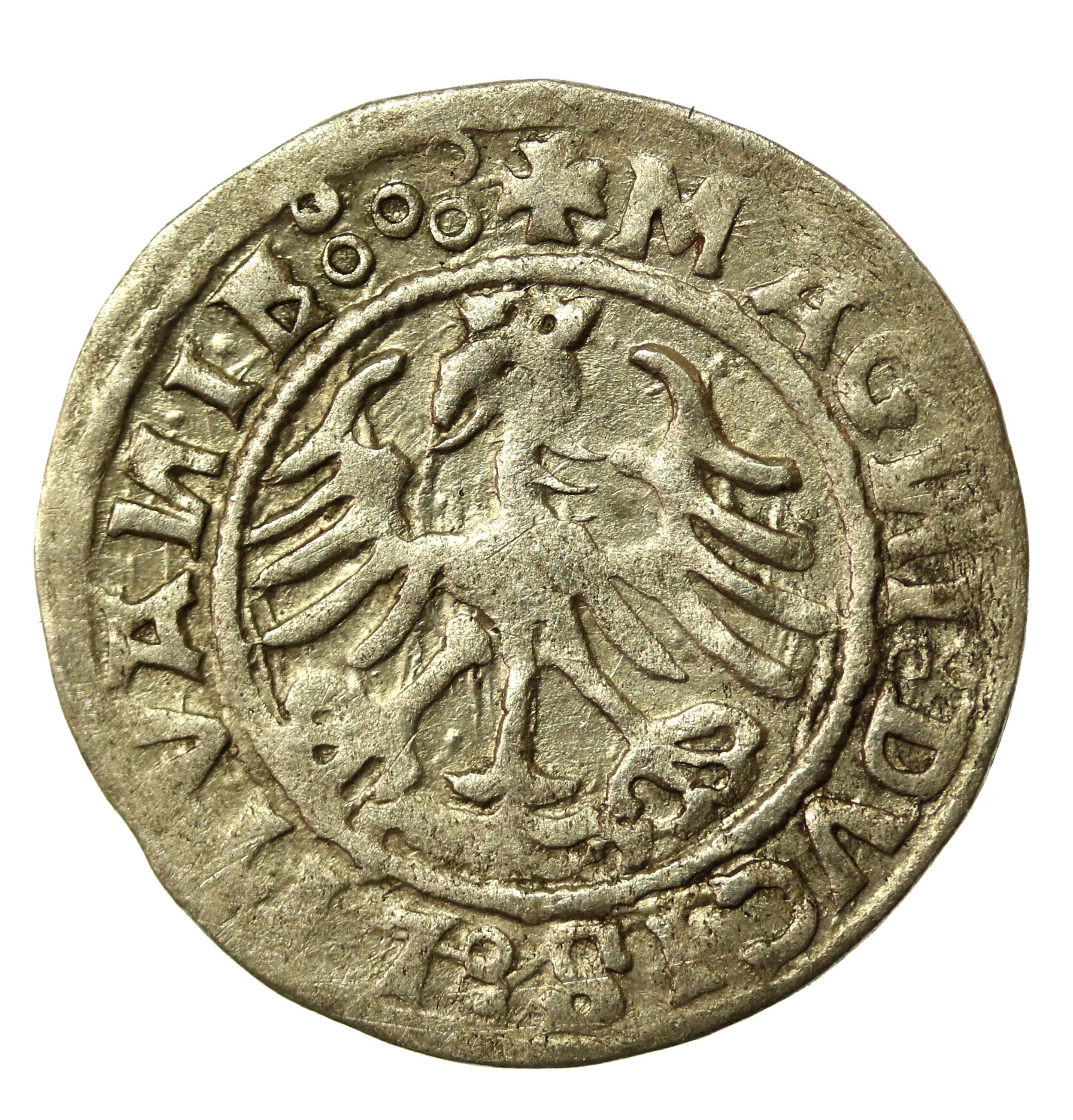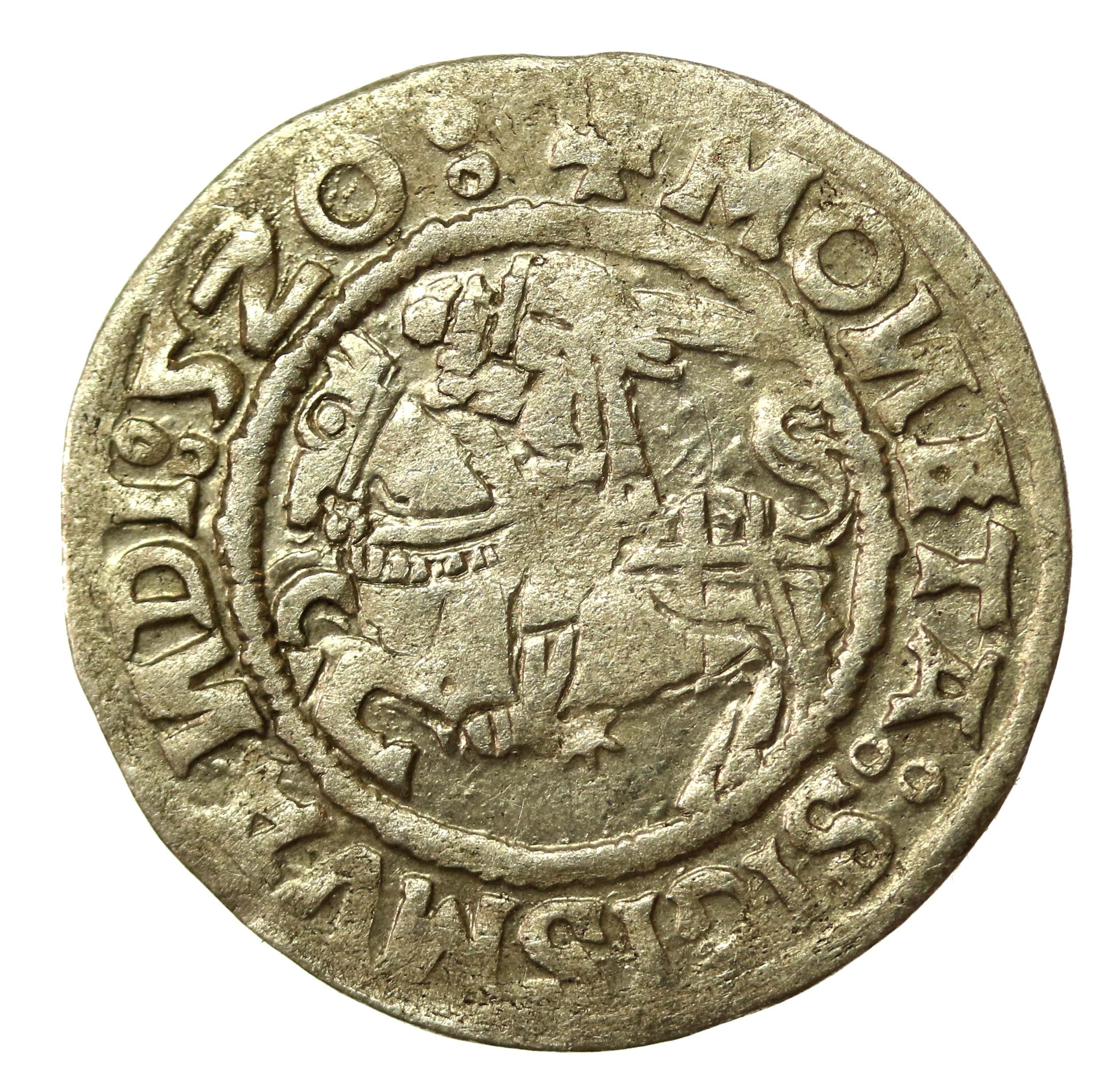 Zygmunt I Stary, Półgrosz Wilno 1520 - skrócona data 520. SIGISMUANDI. Stan zachowania 2/2-. Dobrze wybita moneta. Literatura: Ivanauskas jak 1S498-9, Kopicki 3159 (R3)