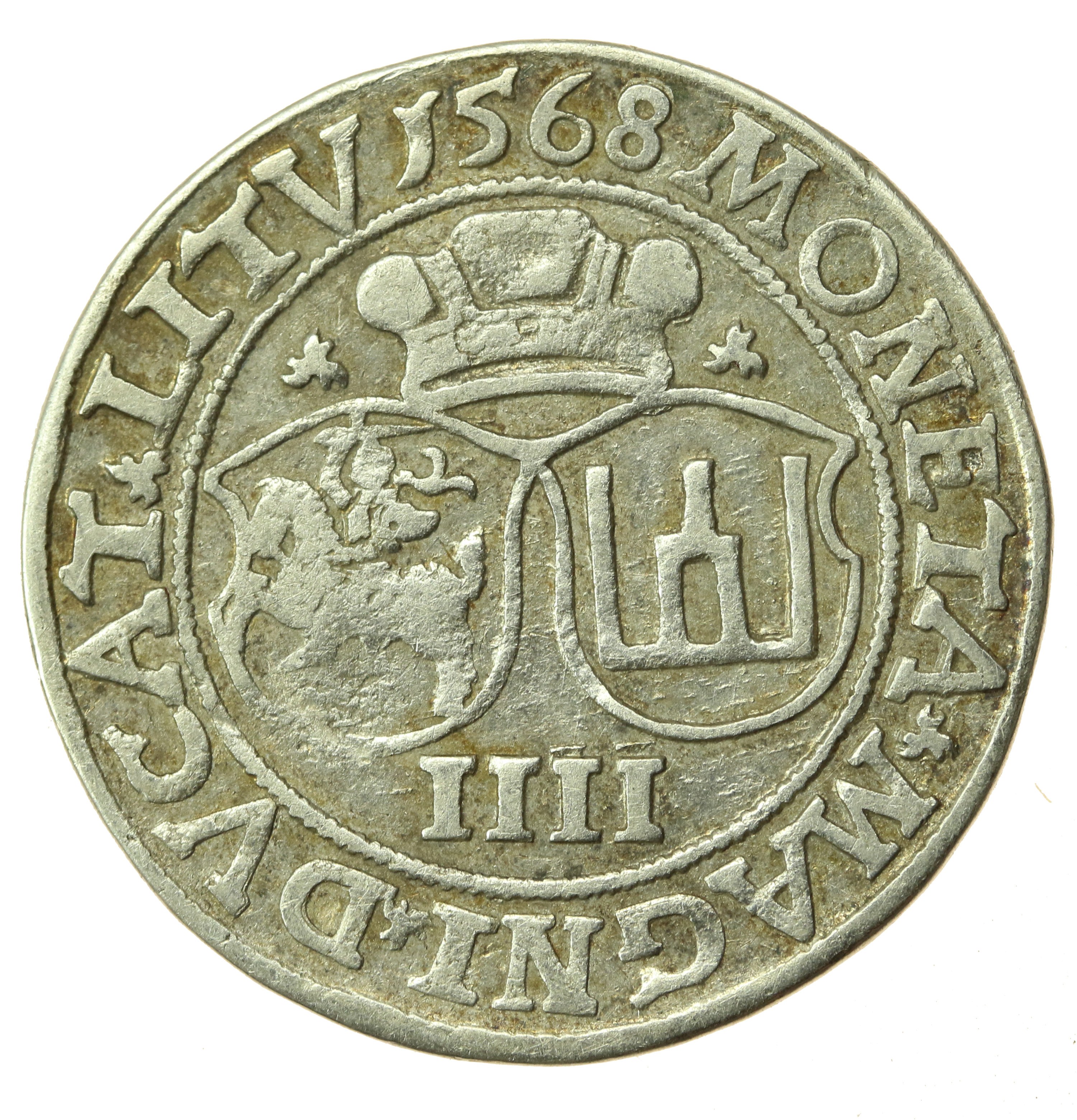 Zygmunt II August, czworak 1568, Wilno, LI/LITV. Połyskowy egzemplarz. Stan 2. Dobrze zachowana moneta z połyskiem menniczym i patyną. Literatura: Kopicki 3313 (R1)