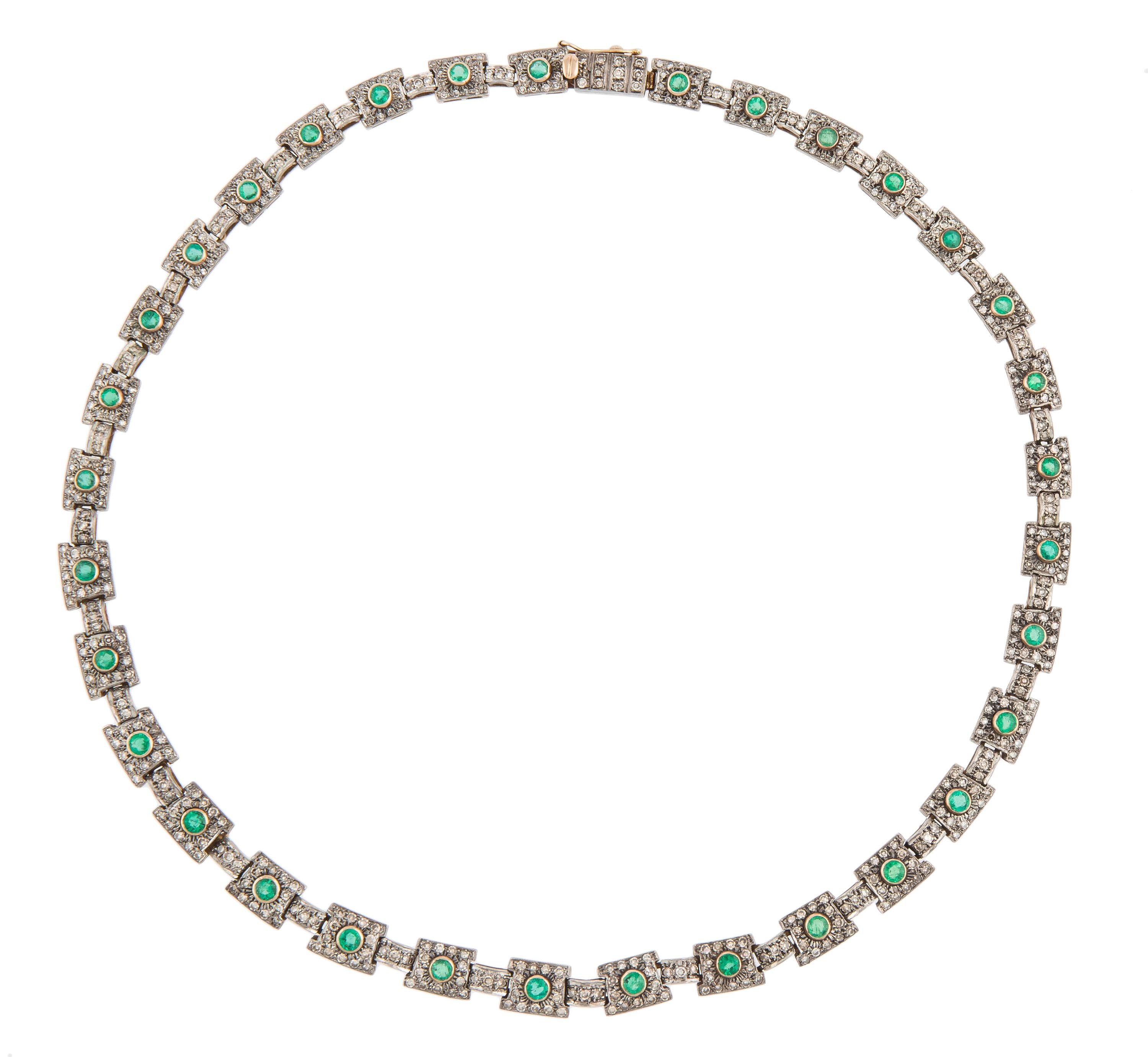 złoto, pr. 0,750, m. 44,23 g, 537 szt. diamentów łącznie ok. 4,50 ct, SI2-P1/K-L, 33 szt. szmaragdów łącznie ok. 2,80 ct