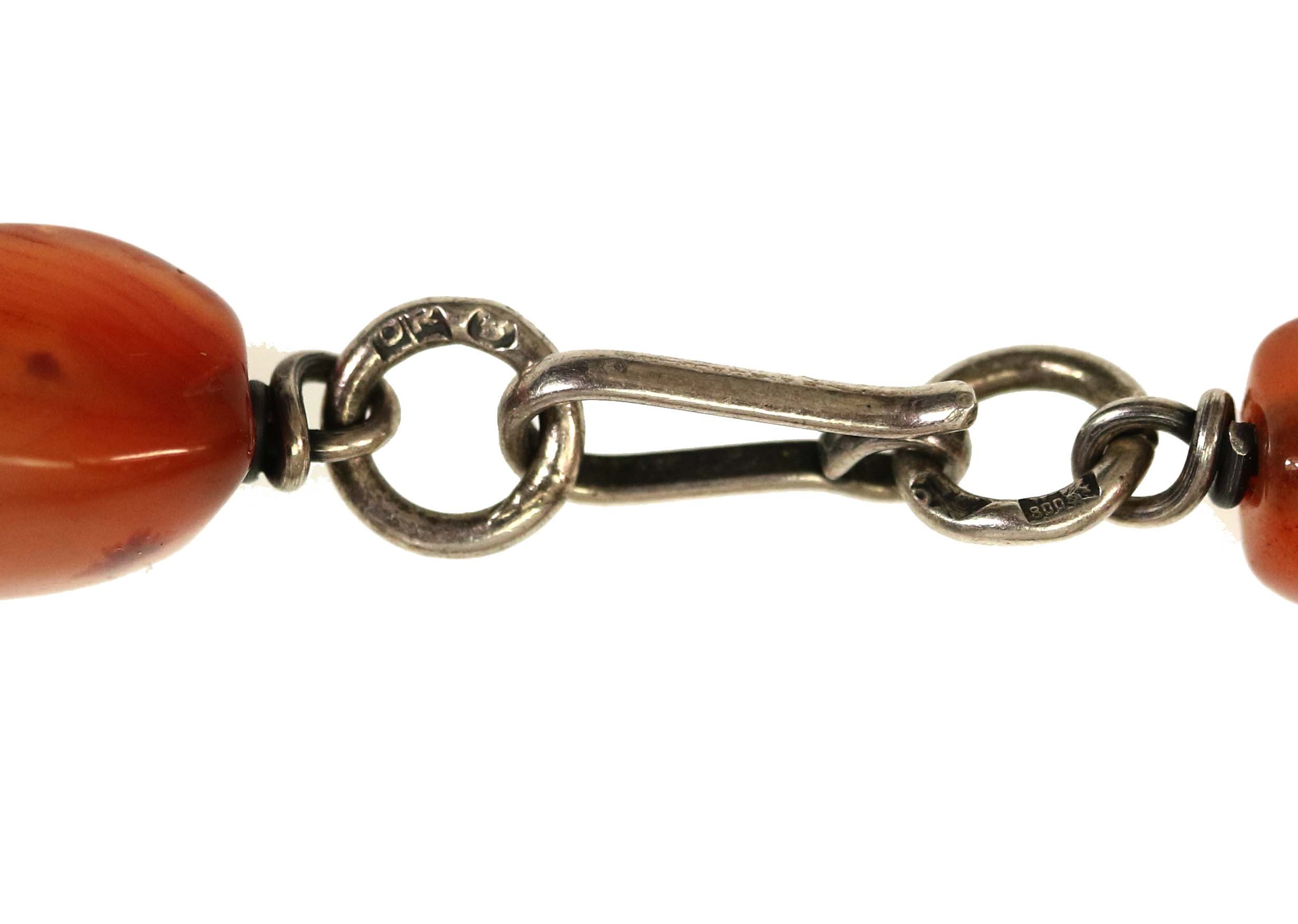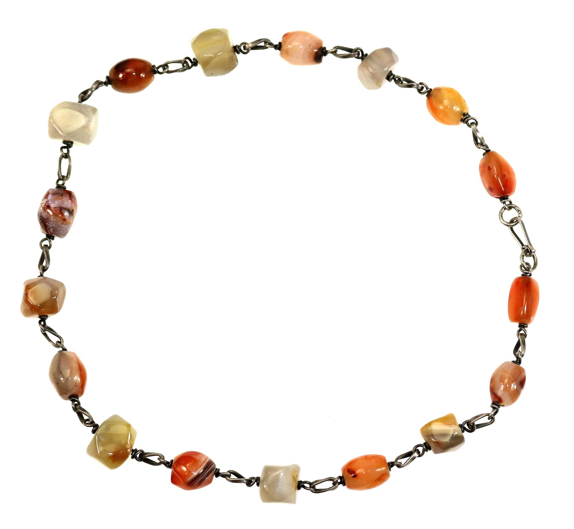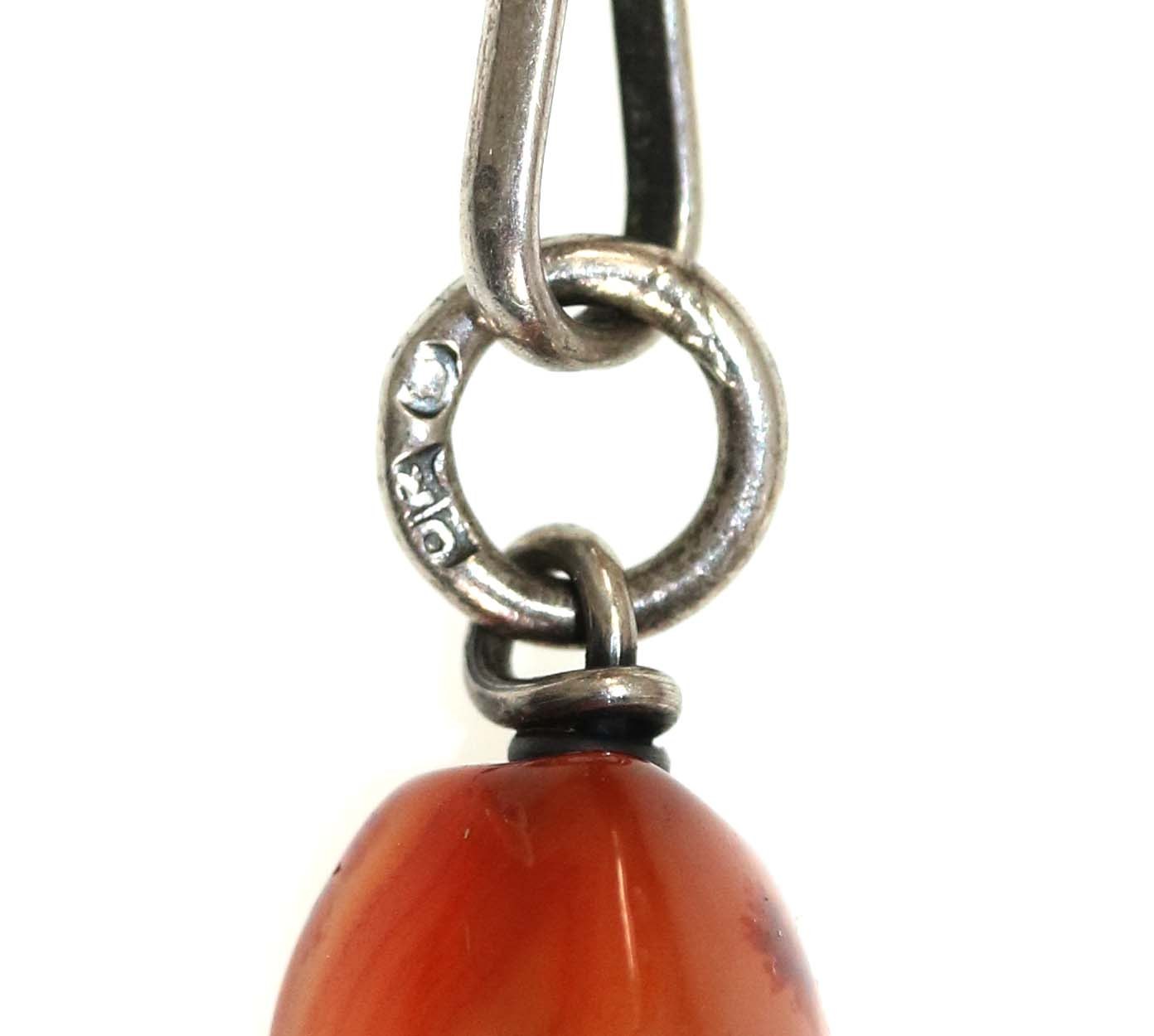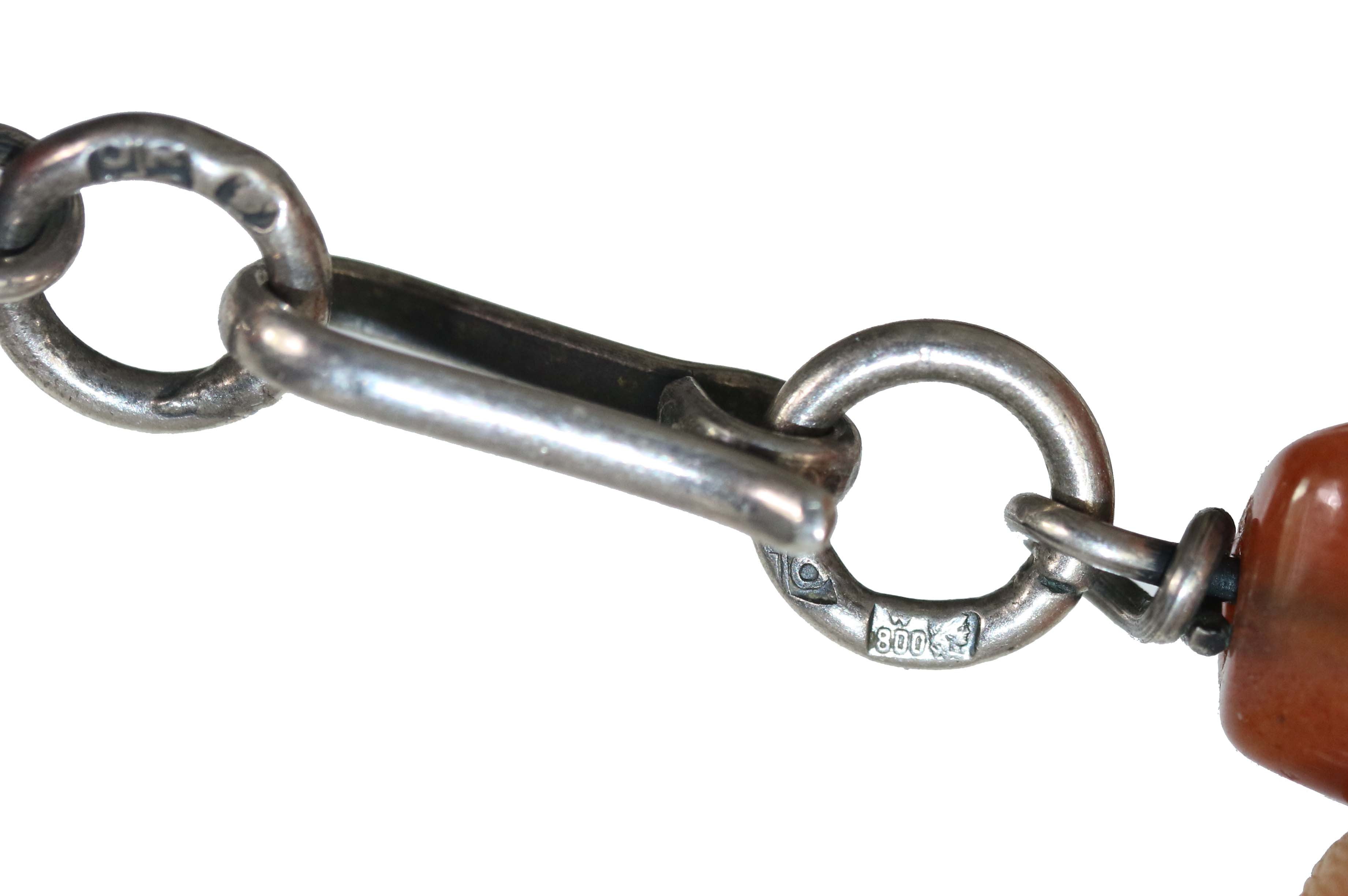 Naszyjnik z agatami, ORNO. Srebro, widoczna sygnatura wytwórcy oraz warszawska próba srebra "800" po 1985 r. Długość naszyjnika 46 cm. Waga 57,9 g.