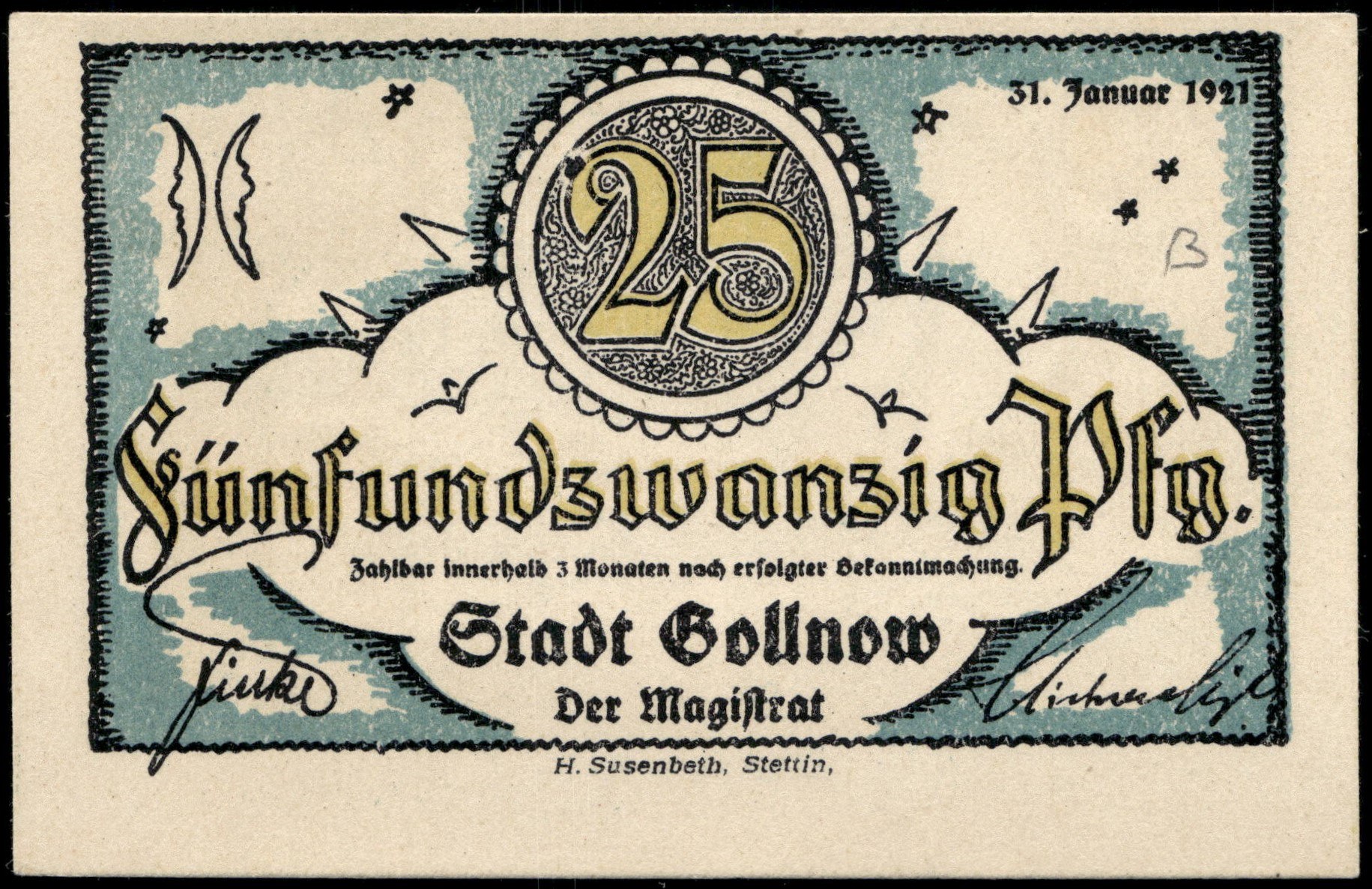 Poland. Goleniów 25 Fenigow 1921 Error Off Center Cut
