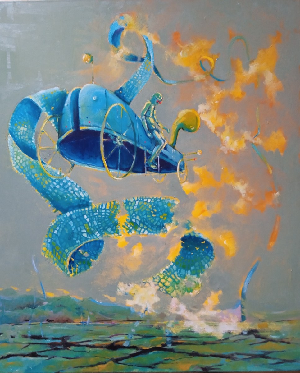 „Tworzę wyimaginowany świat moich doznań i emocji. Raz przenoszę odbiorców do baśniowej, łagodnej rzeczywistości, jak wówczas, gdy na jednym obrazie oglądamy siedzącego małego chłopca patrzącego w dal. Ten ,,Mały Książę” może marzy o znalezieniu wyjątkowej istoty, która mogłaby stać się jego przyjacielem i sprawić, by jego życie nabrało sens. Innym razem zabieram widzów w surrealistyczną przestrzeń, w której niestety rządzą maszyny przenoszące w czasie ludzi, wróżby, karty do gry i szklane kule. Ale interpretację zawsze pozostawiam odbiorcom” – tłumaczy autor.