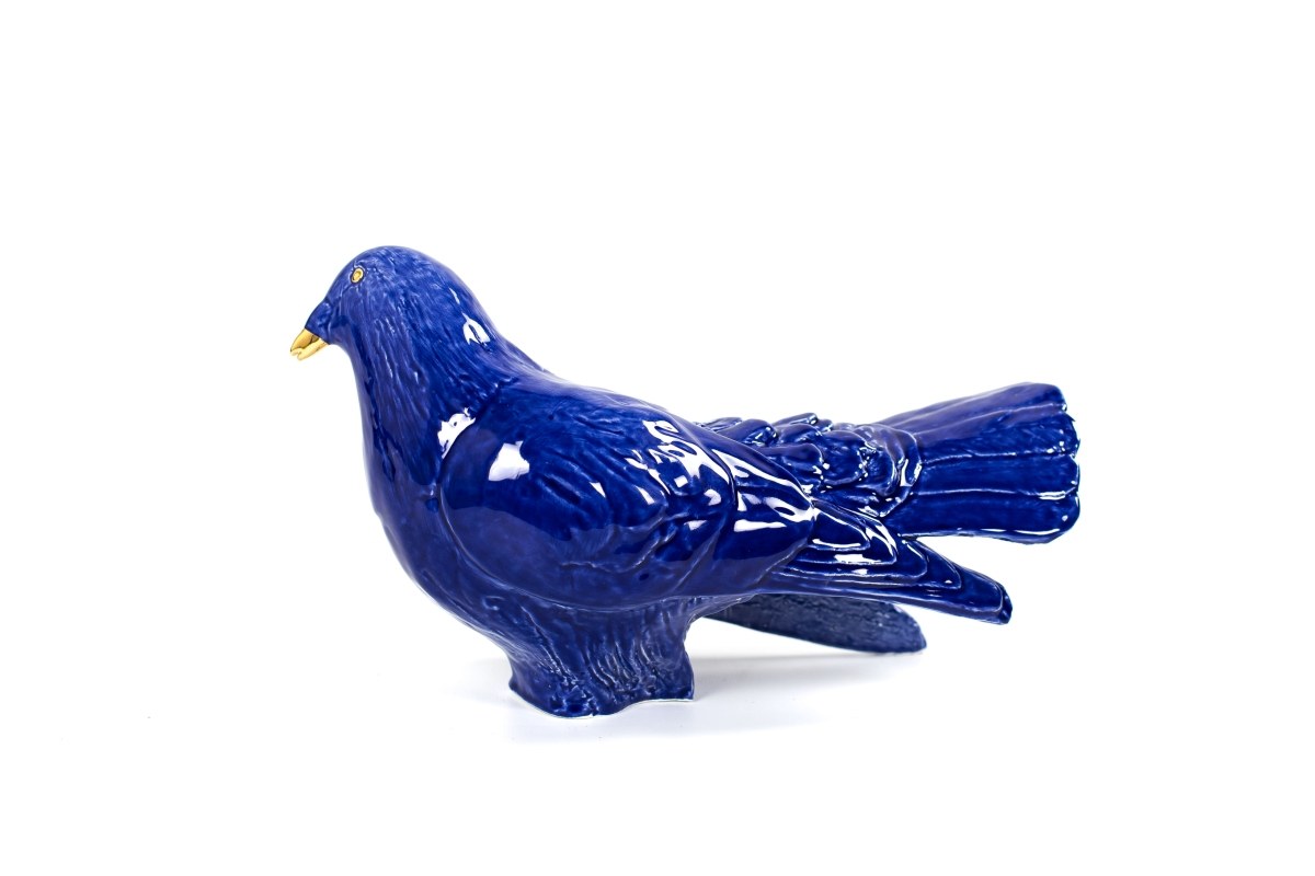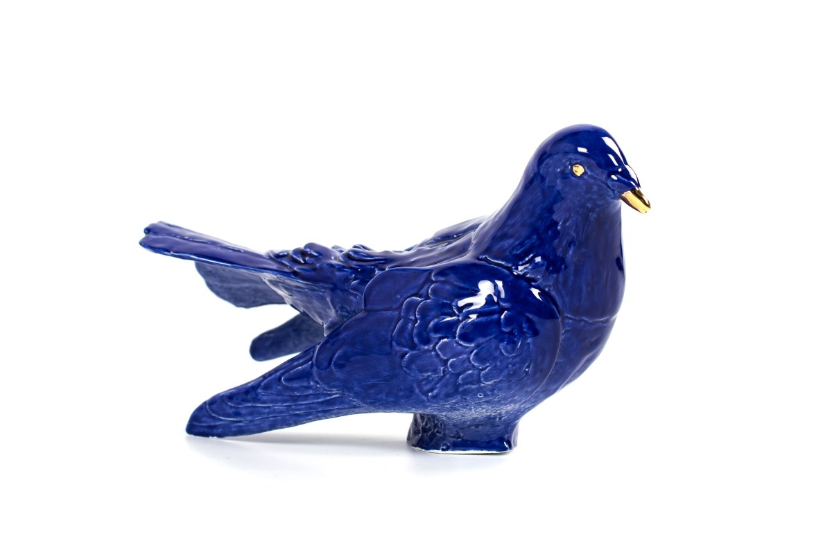 ceramika szkliwiona i pozłacana, 18 x 30 x 13 cm, sygn. na spodzie: logo artystki