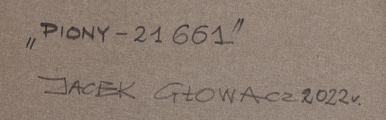 sygnowany, datowany i opisany na odwrociu: '"PIONY - 21 661" | JACEK GŁOWACZ 2022 r.'