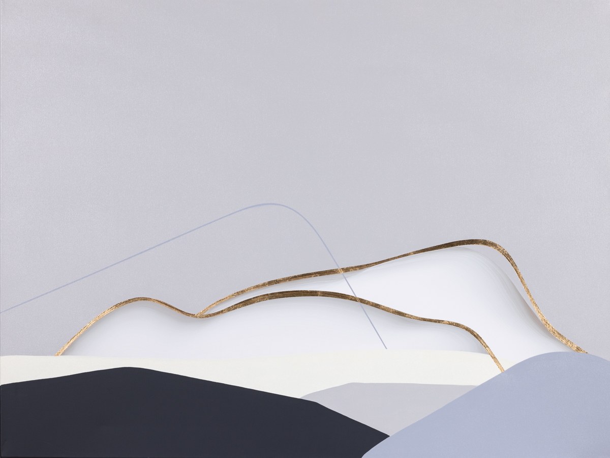 akryl, złoto płatkowe, płótno, 90x120 cm, opisany na odwrocie: Lierles 2024 qkyl, złoto pł., płótno, 120x90, Julia Dunko DJ