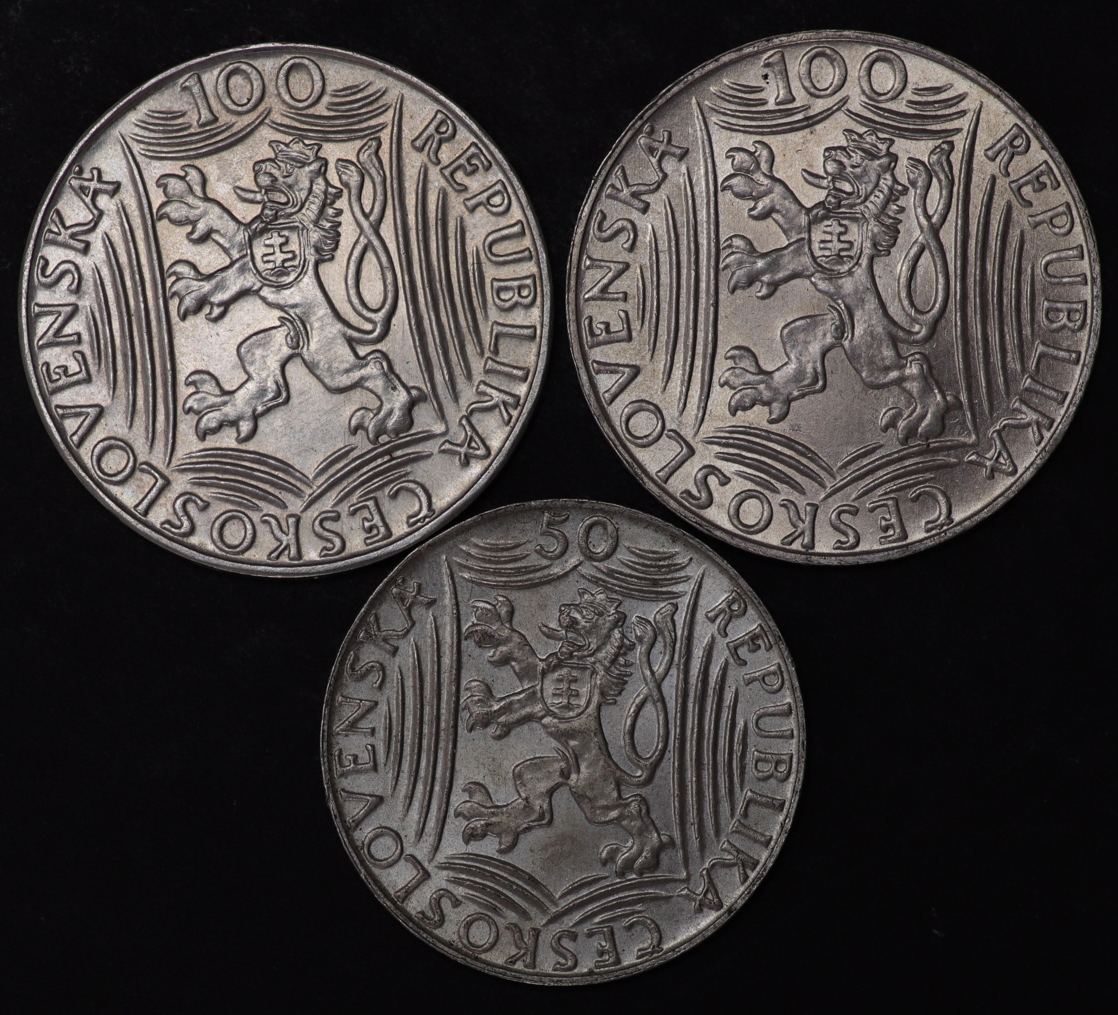 Czechosłowacja, 2 x 100 koron 1949, 50 koron 1949 - zestaw 3 sztuk