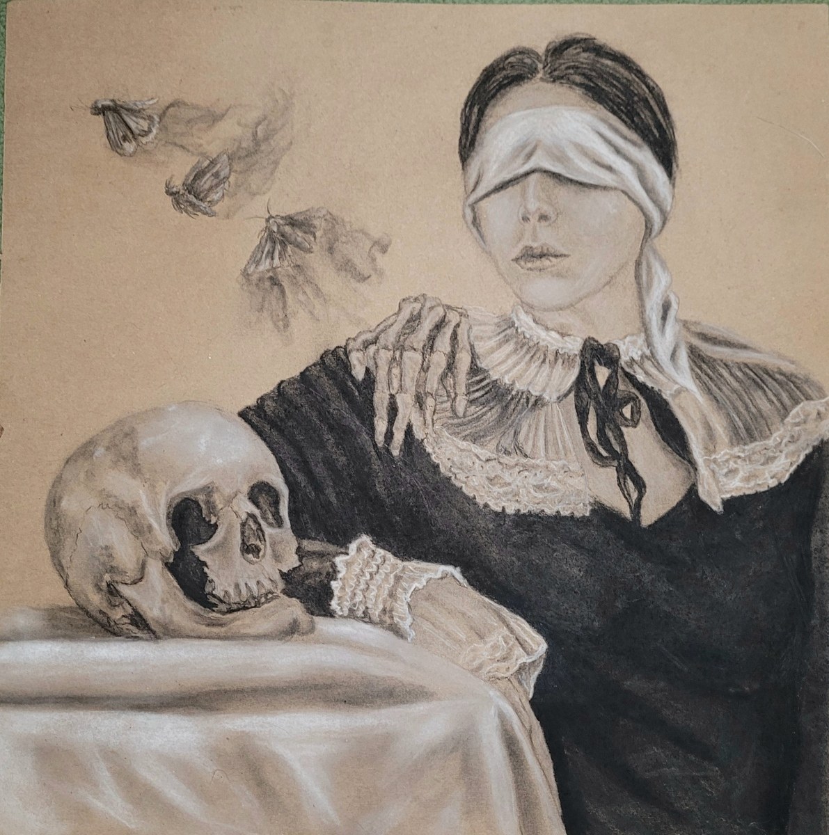 technika mieszana (węgiel, biała kredka), szary papier, 50 x 50 cm, sygn. na odwrocie