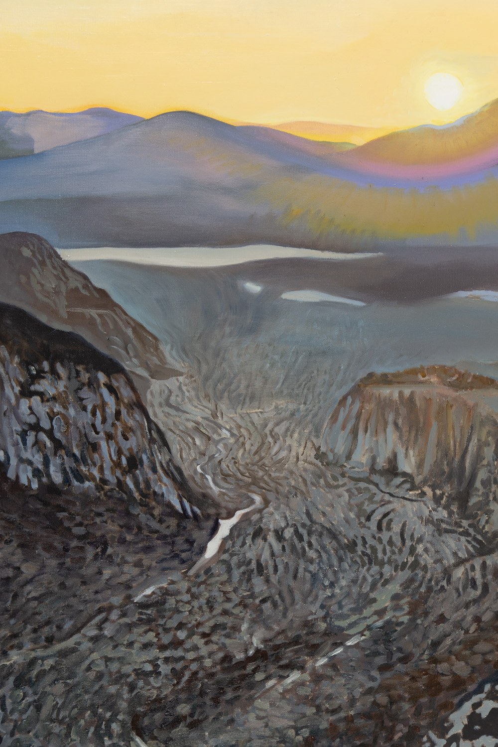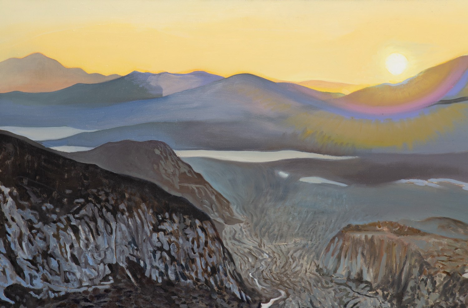 sygnowany, datowany i opisany na odwrociu: 'SYLWIA WIRSKA | "WIDOK Z DELF" | "VIEW FROM DELPHI" | 100 x 120 cm | 2019 | olej/OIL | len/LINEN'