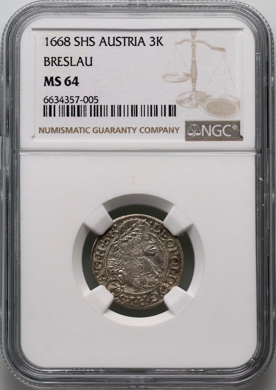 Śląsk pod panowaniem austriackim, Leopold I, 3 krajcary 1668 SHS, Wrocław