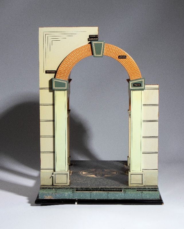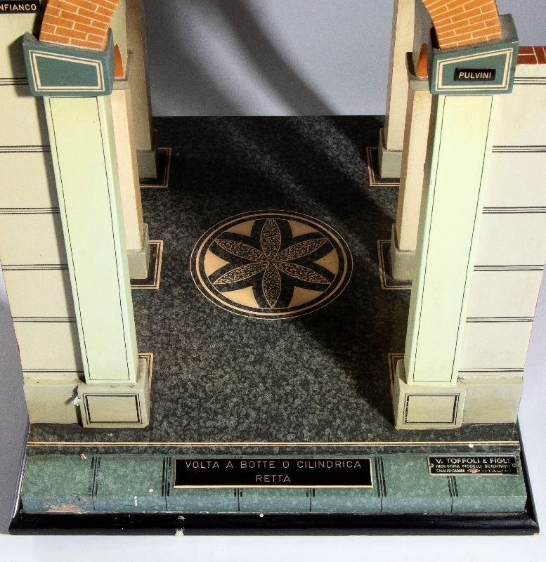Model of a BARREL VAULT OR STRAIGHT CYLINDRICAL VAULTStudy model for architecture schools, scientific studies, and technical studies, made by V. TOFFOLI & FIGLI INDUSTRIA MODELI SCIENTIFICI - CALALZO - CADOREOriginal, made of wood and composite materials, 1960s. Dimensions: approximately 35 x 42 x 32 cm.