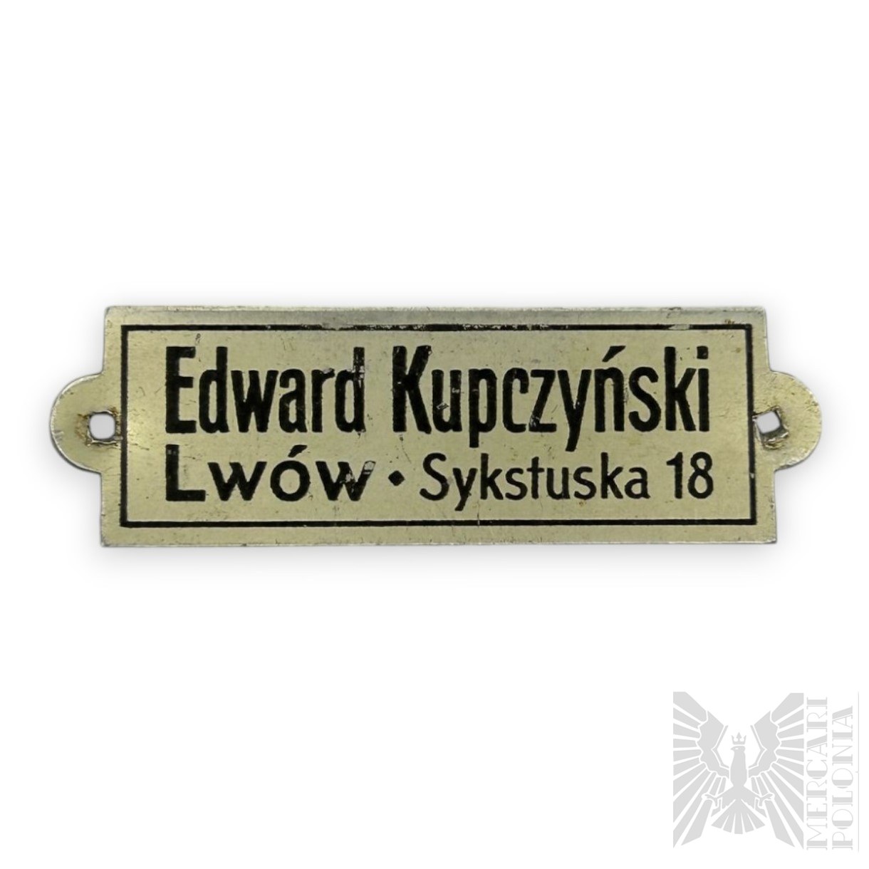 II RP - Mała Blaszana Etykieta Zakład Rymiarski: Edward Kupczyński Lwów, Sykstuska 18