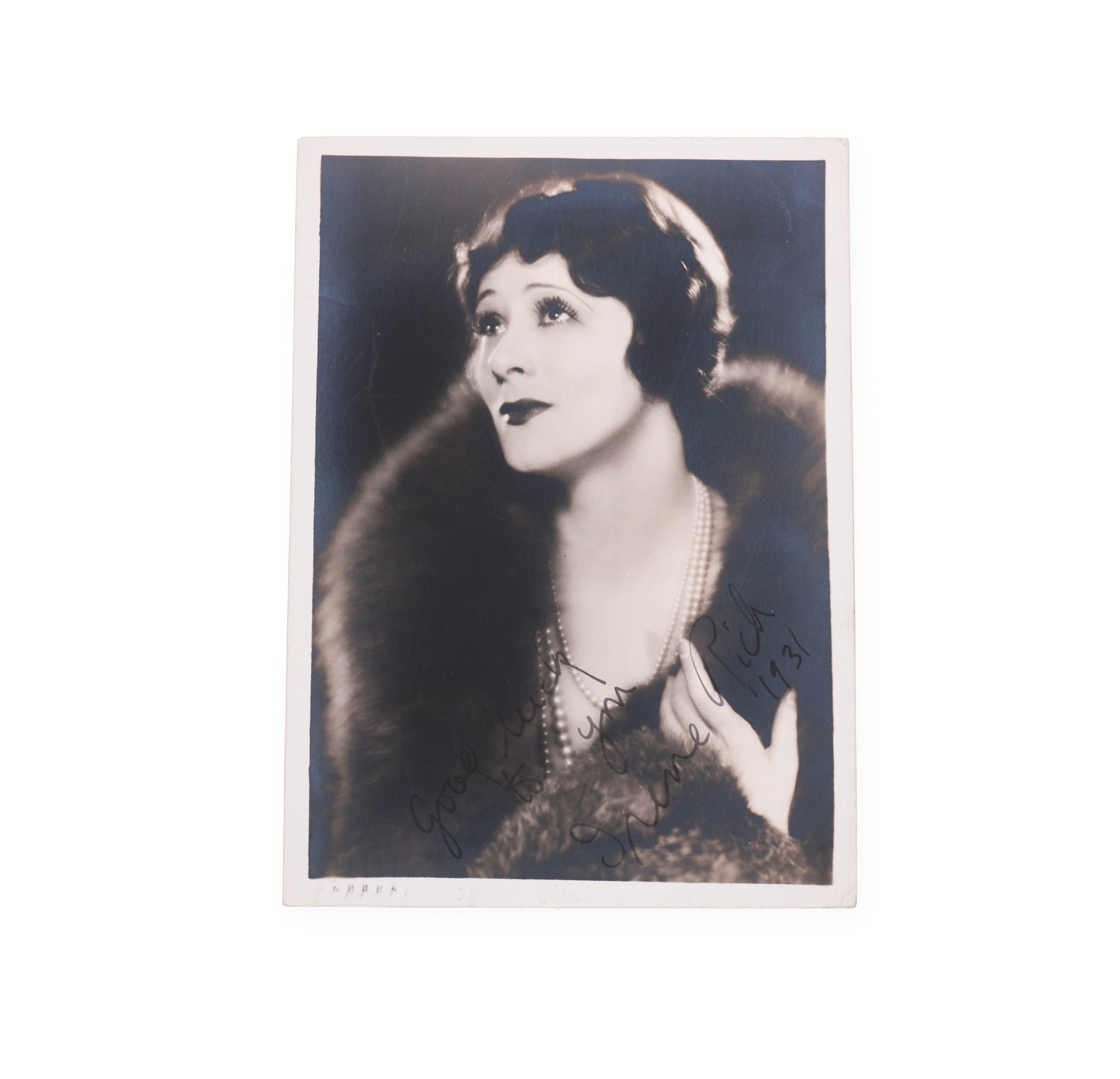 Irene Frances Rich's signature on her photograph with the dedication "Good luck to you - Irene Rich 1931". Irene Rich was an American actress who shined in both the silent and early sound film eras. She was known for her elegant demeanor and mature, dignified roles as mothers and social women. In addition to her film career, she also worked in radio and theater.Bidders are obliged to inform themselves about the condition of the lots before the auction, subsequent complaints will not be taken into account.