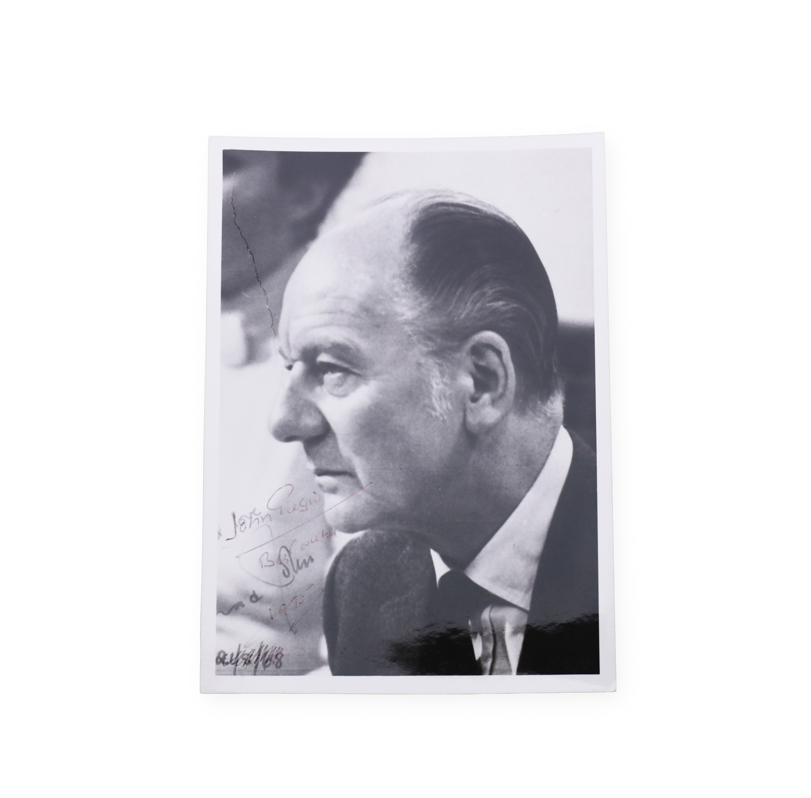 John Gielgud was a British actor and director, one of the most important figures in world theater and film of the 20th century. Signature on a photograph from 1973, a valuable document associated with his acting career.