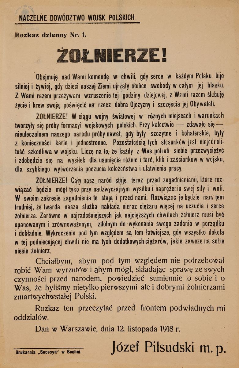 ROZKAZ DZIENNY Nr. 1.; 12.11.1918