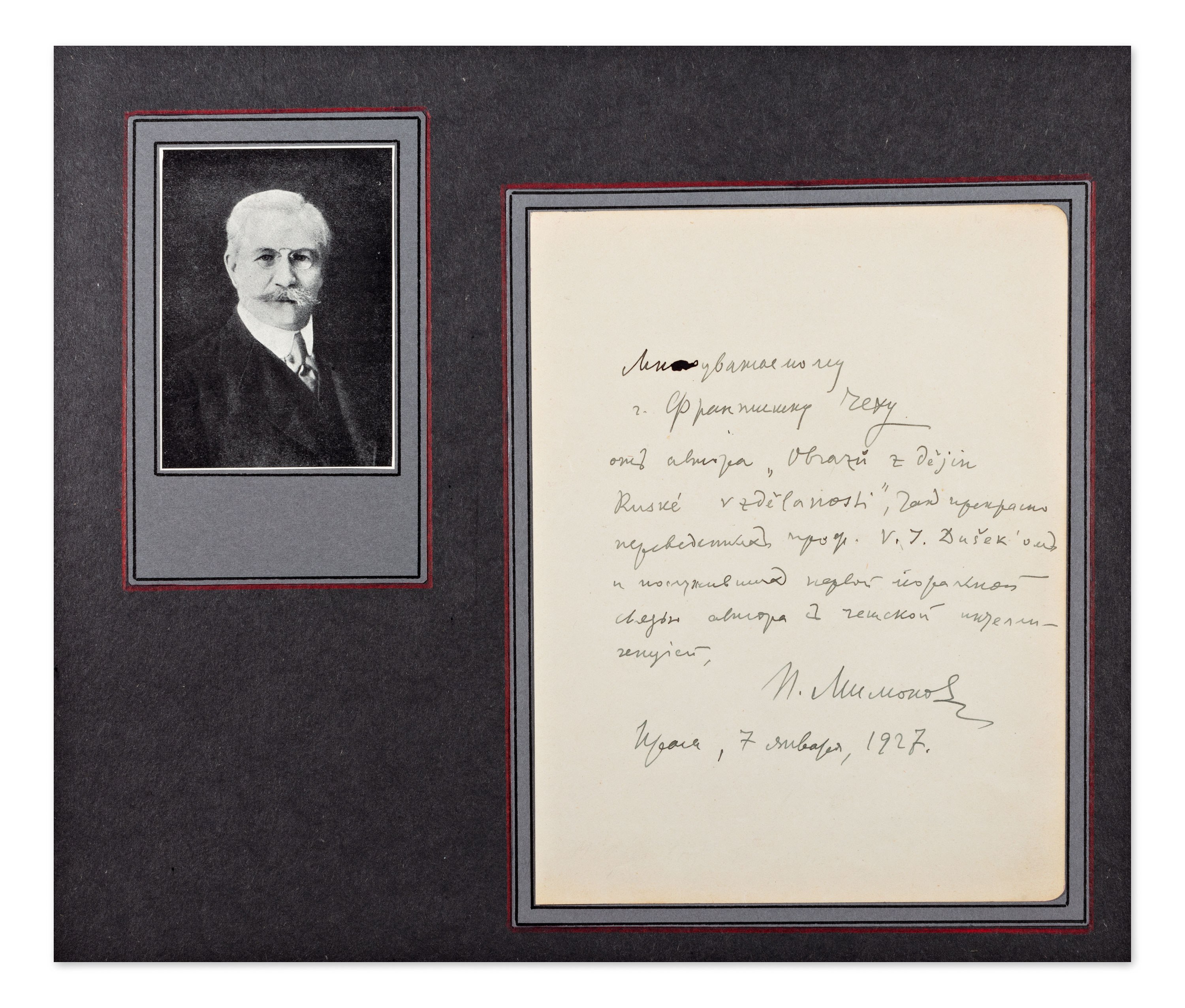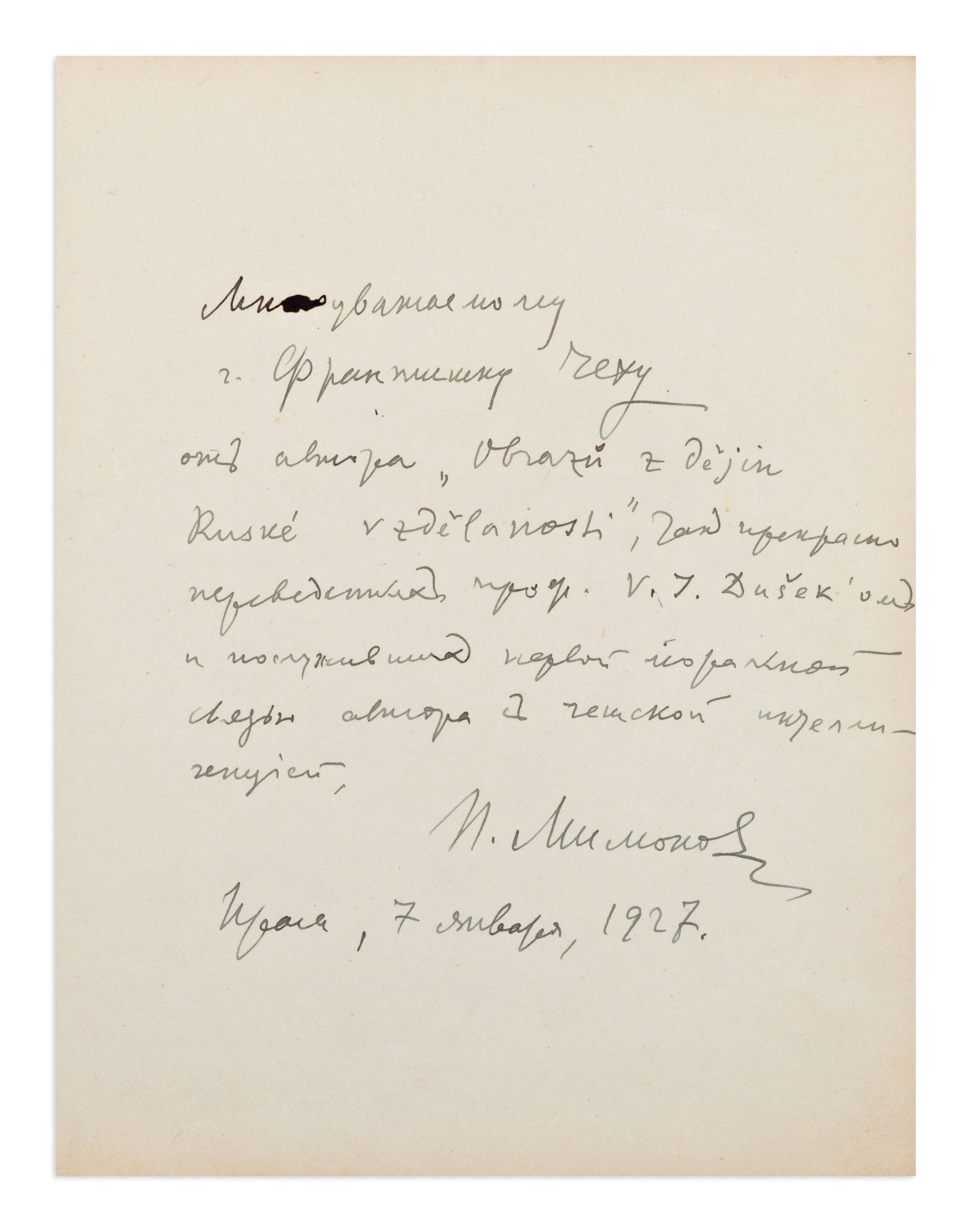 Handwritten letter from the prominent Russian historian, politician, and diplomat Pavel Milyukov, written in Prague on January 7, 1927.Original text in Russian: