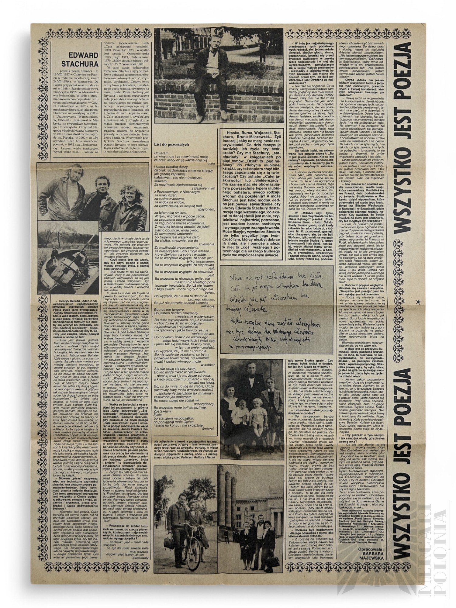 PRL, ok. 1970 r. - Dwustronny Plakat Edward Stachura z Danymi biograficznymi, Dziełami literackimi i Fotografiami
