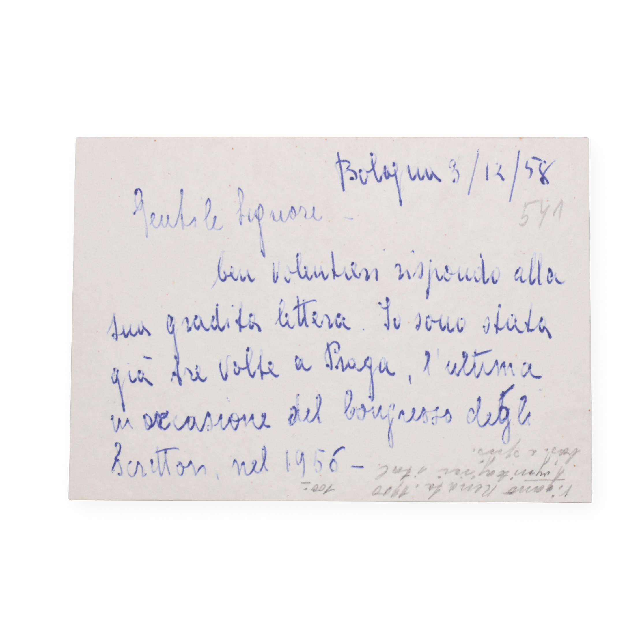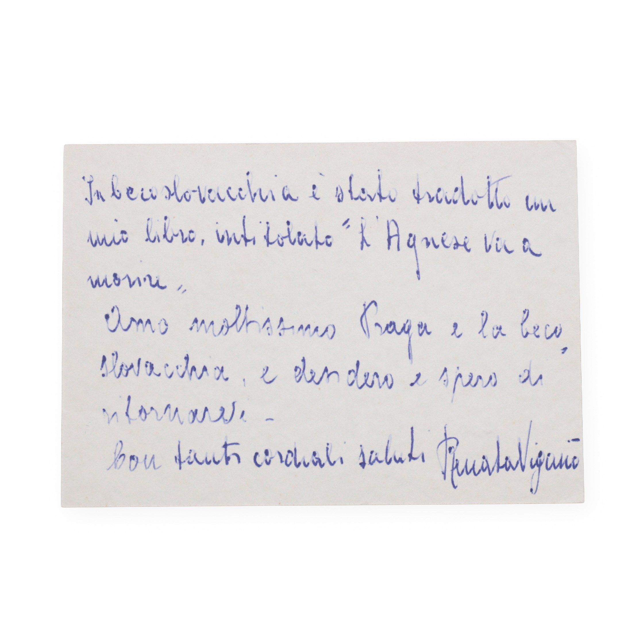 Handwritten letter in Italian signed by writer Renata Viganò in full name and dated 3 December 1958. Renata Viganò was a prominent Italian author, journalist and anti-fascist activist whose work drew on personal experience of the resistance during World War II. She became especially famous for the novel "Agostino", which became a symbol of the female voice in Italian neorealist literature. The letter represents a personal and literary document of the time when Viganò was a recognized figure in the cultural and political life of post-war Italy.