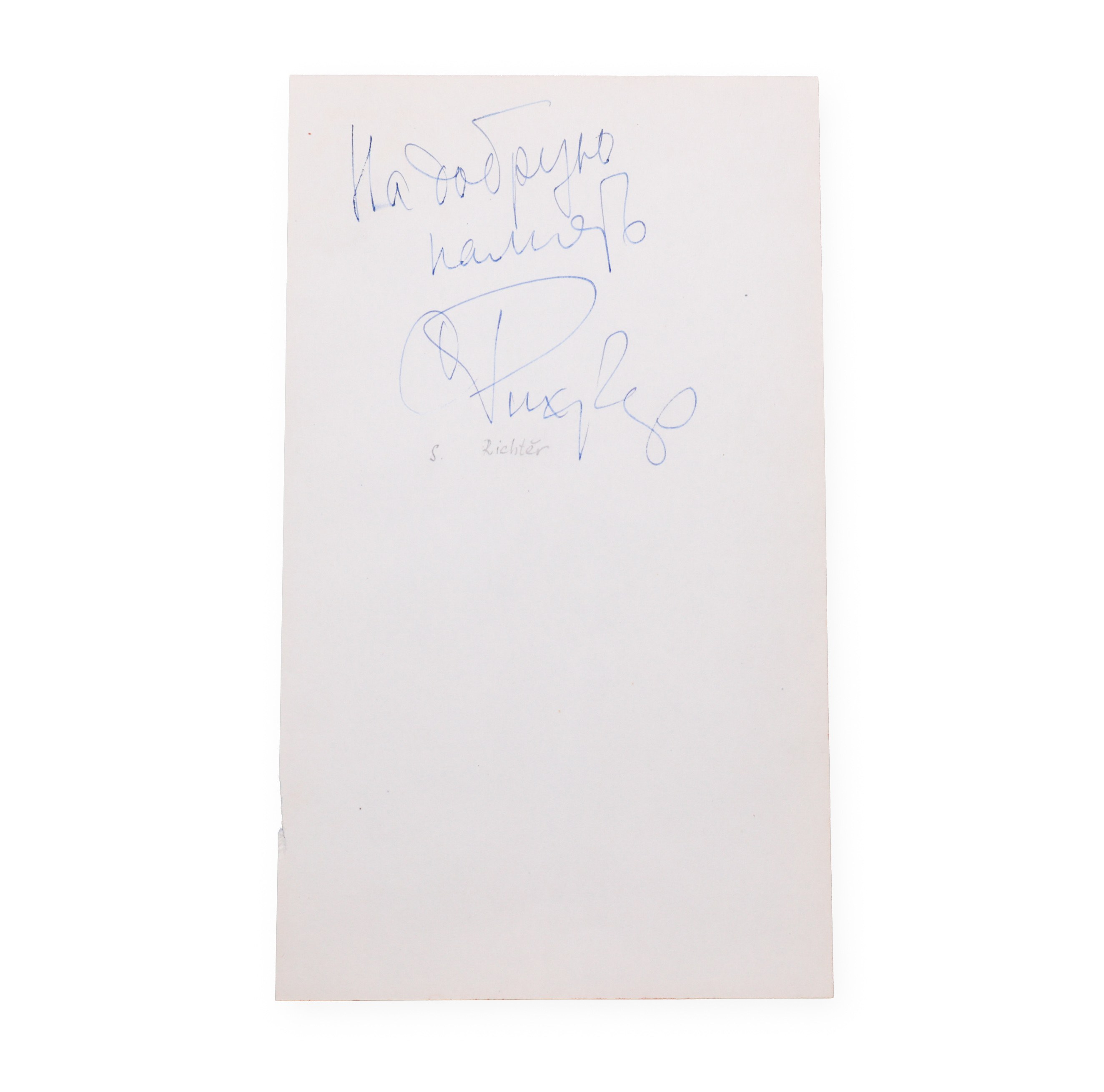Sviatoslav Richter was a Russian pianist, one of the most important figures in world music of the 20th century. Signature with dedication on a ticket from the memorial, a valuable document associated with his concert activity.Bidders are obliged to inform themselves about the condition of the lots before the auction, subsequent complaints will not be taken into account.