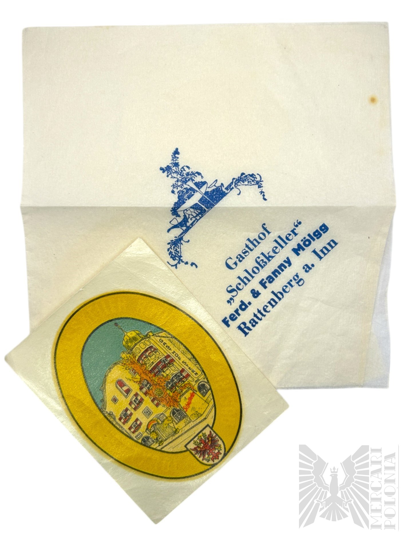 XX w., Austria - Serwetka oraz Grafika z Restauracji Schlosskeller w Rattenbergu