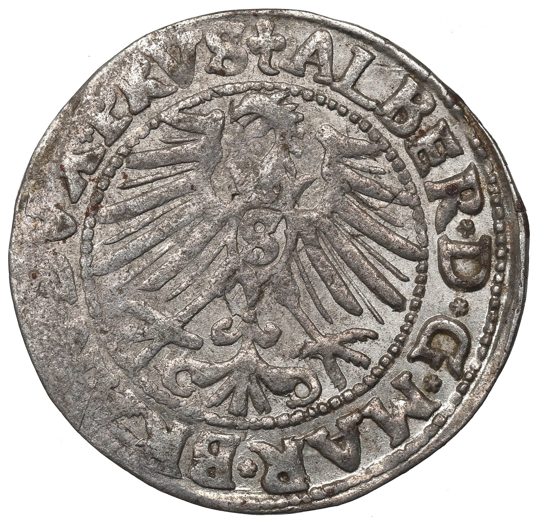 Rewers: orzeł Prus Książęcych z inicjałem Zygmunta na piersi w otoku perełkowym, w otoku zewnętrznym legenda rozpoczynająca się od gwiazdki:
