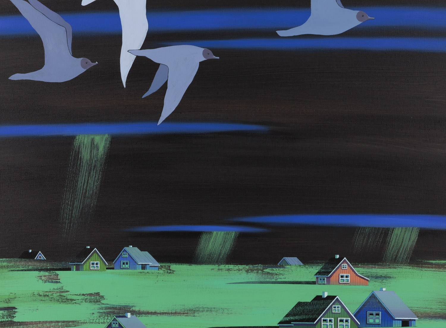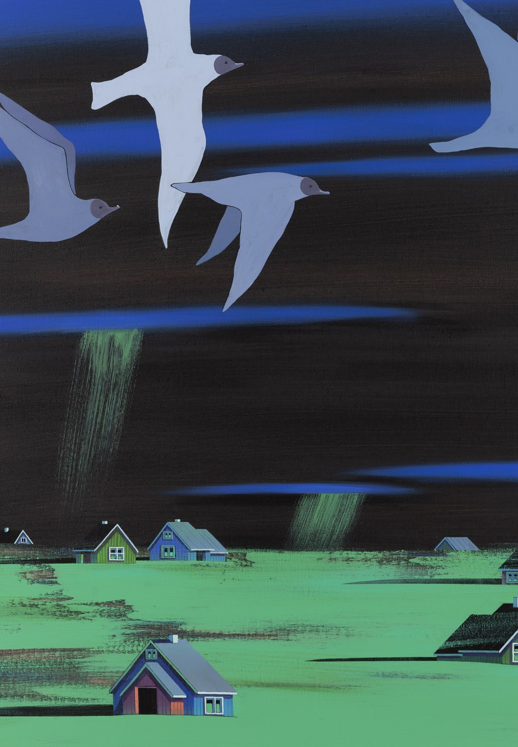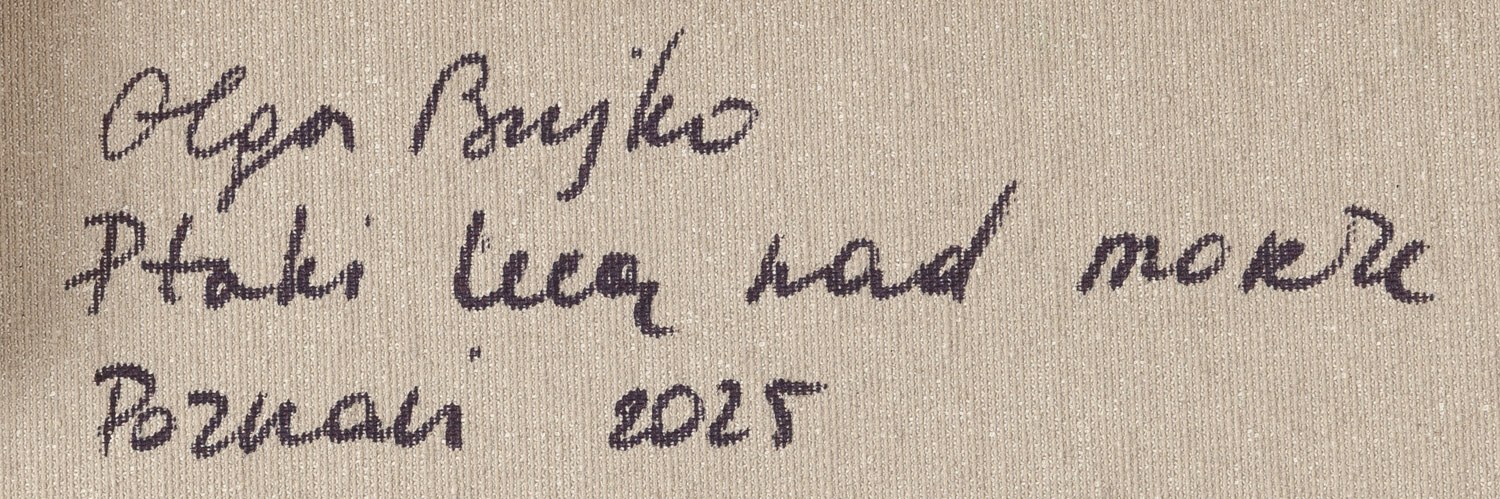 sygnowany, datowany i opisany na odwrociu: 'Olga Bujko | Ptaki lecą nad morze | Poznań 2025'