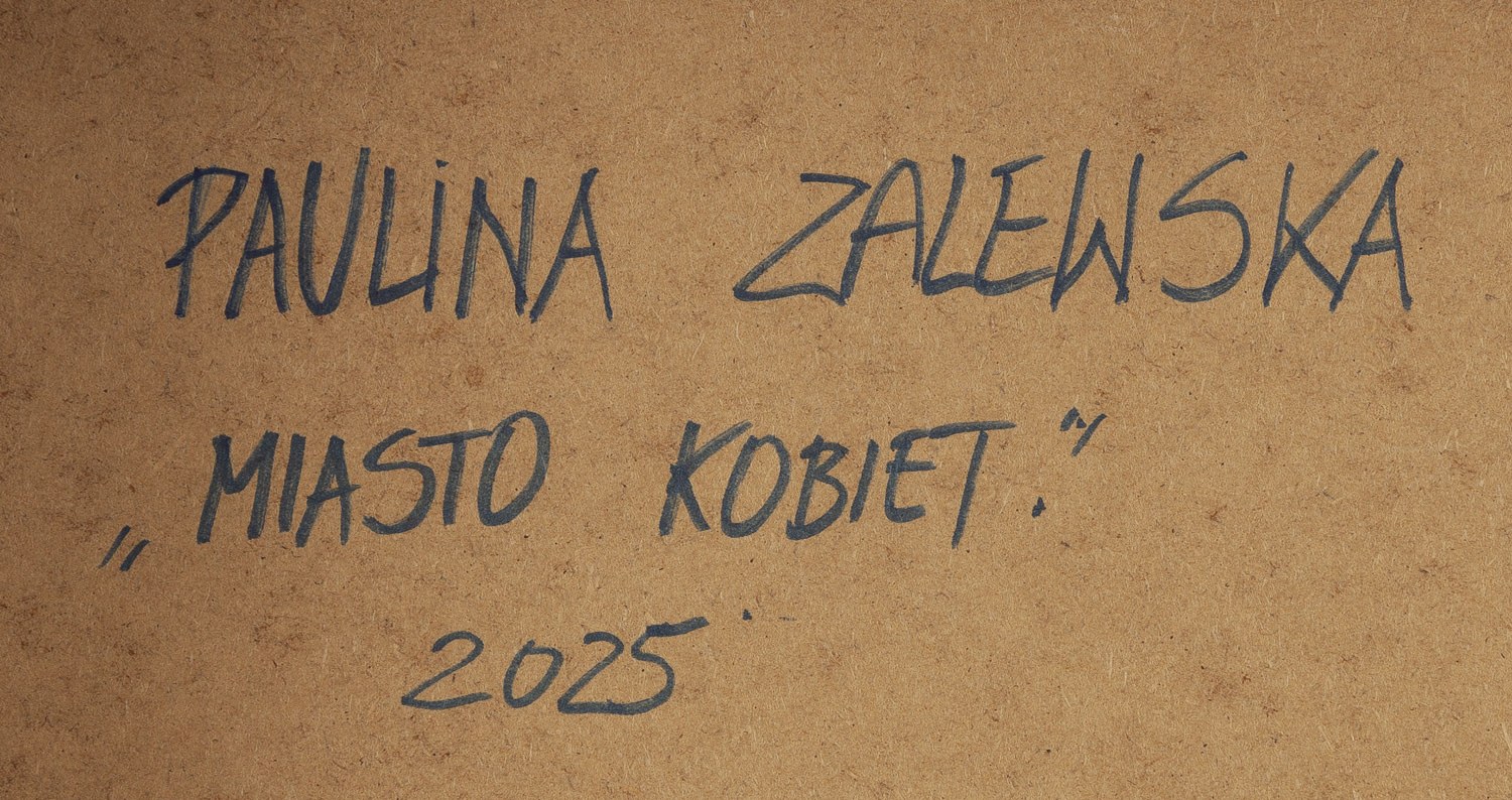 sygnowany, datowany i opisany na odwrociu: 'PAULINA ZALEWSKA | "MIASTO KOBIET" | 2025'