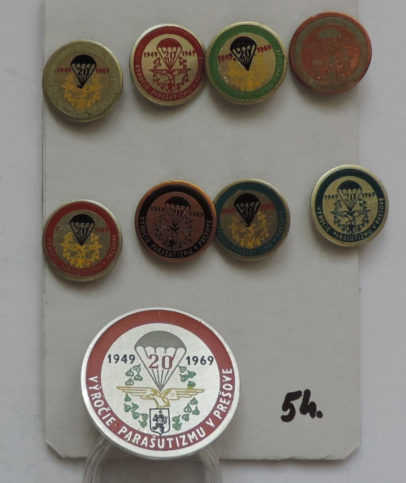 20. výročí parašutismu v Prešově 1949-69, 9ks – ojedinělé