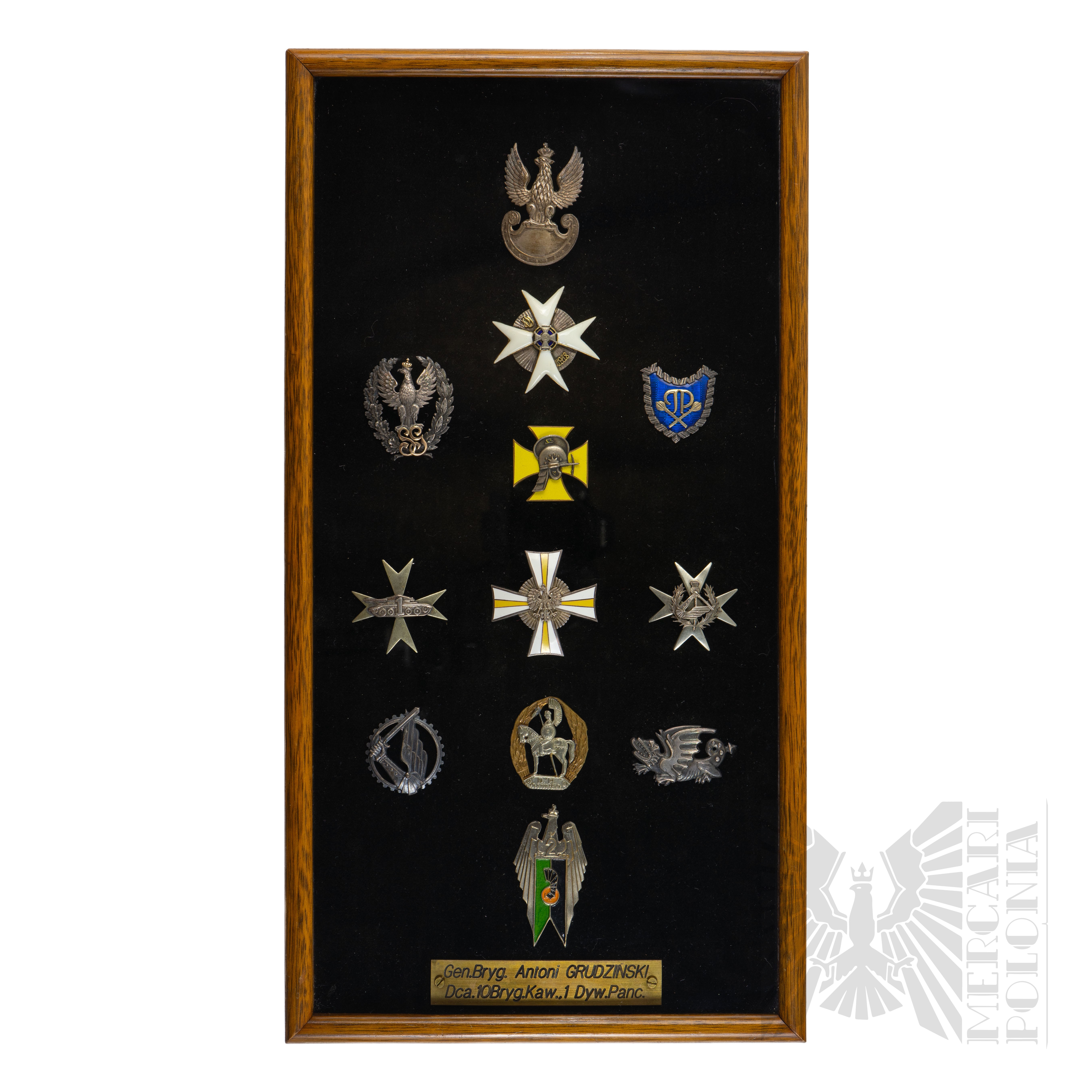 Odznaka nadana Generałowi Antoniemu Grudzińskiemu. Przedmiot pochodzi z zestawu pamiątek po Generale Antonim Grudzińskim, na ostatnim zdjęciu widoczna fotografia całości zestawu, inne elementy zestawu są oferowane na obecnej aukcji.