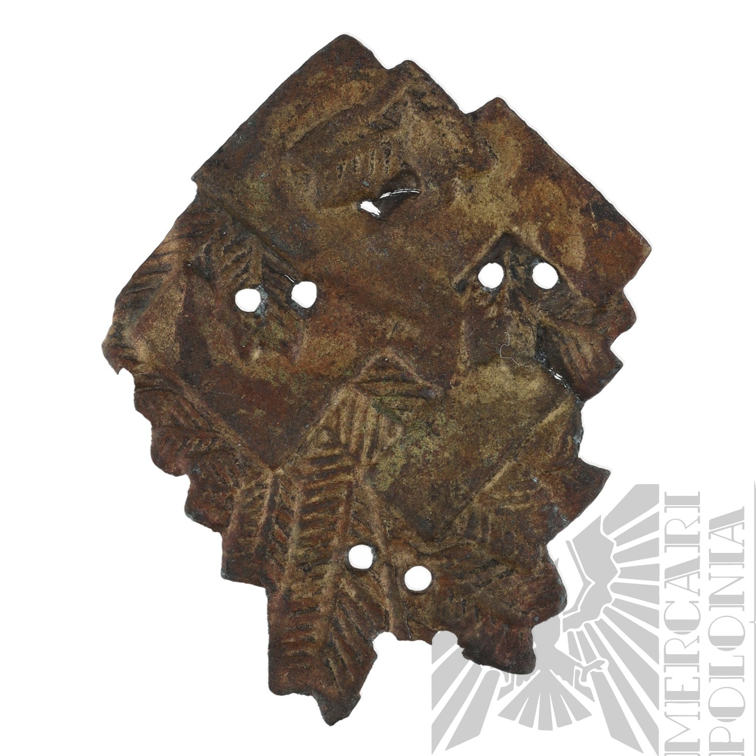 Odznaka Strzelców Podhalańskich z okresu II Rzeczypospolitej ma kształt stylizowanej gałązki jedliny, nawiązującej do tradycji i przyrody Podhala, w centrum umieszczona jest swastyka (krzyżyk niespodziany) – charakterystyczny motyw góralskiej sztuki ludowej, całość wykonana była z metalu.