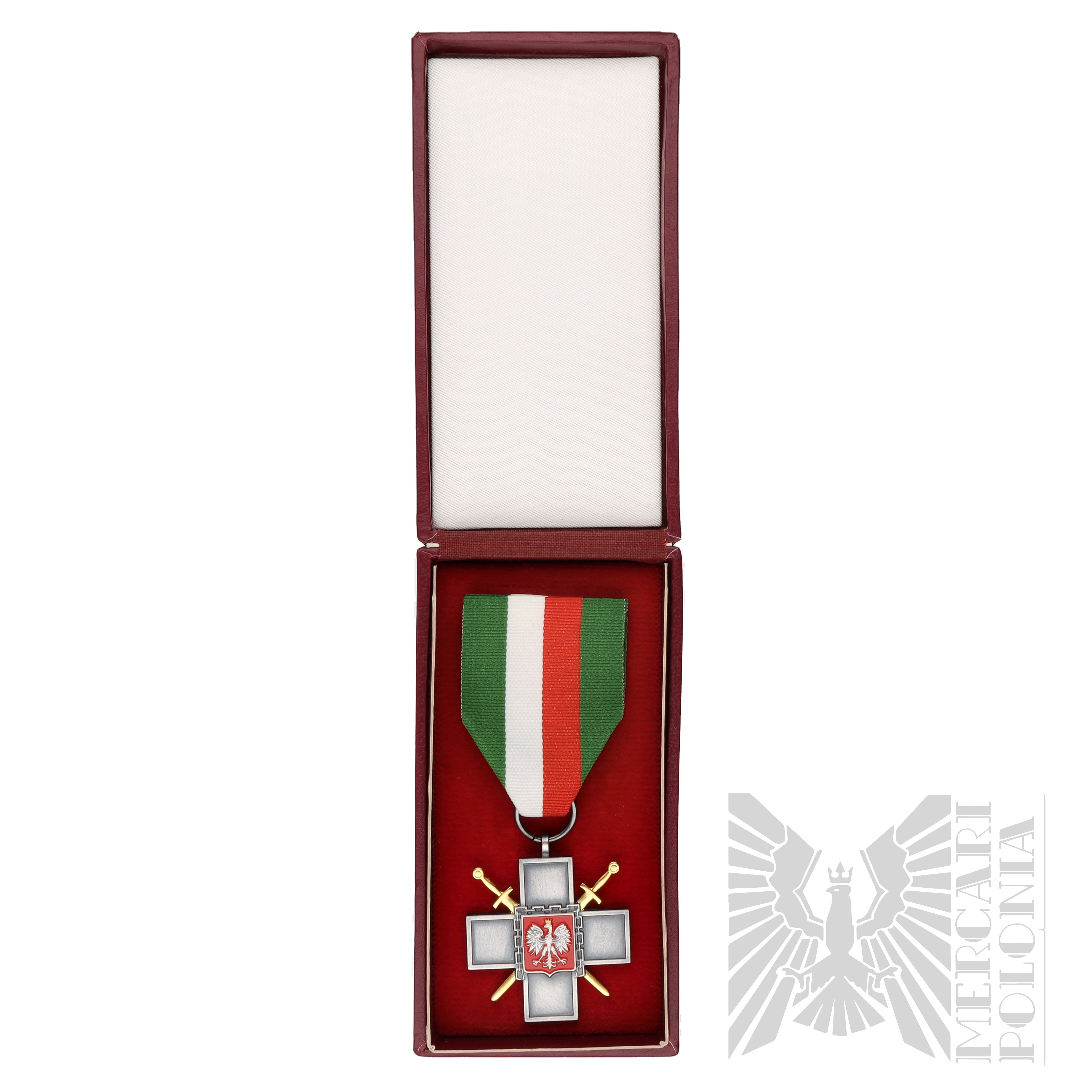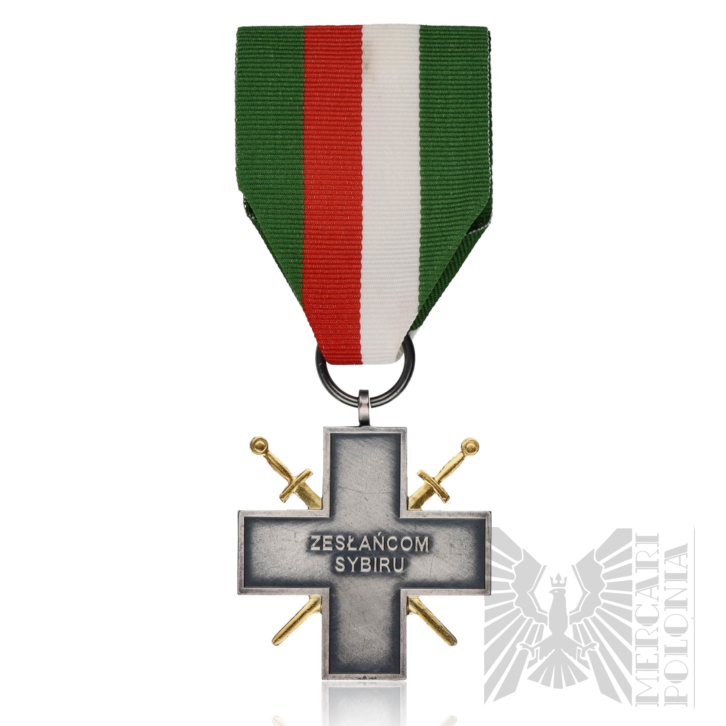 Odznaczenie w formie krzyża, pomiędzy ramionami widoczne skrzyżowane miecze, skierowane klingami ku dołu, w centralnej części widoczne godło państwowe oplecione zerwanym łańcuchem.Na rewersie napis Zesłańcom Sybiru.Stan ogólny widoczny na zdjęciach.