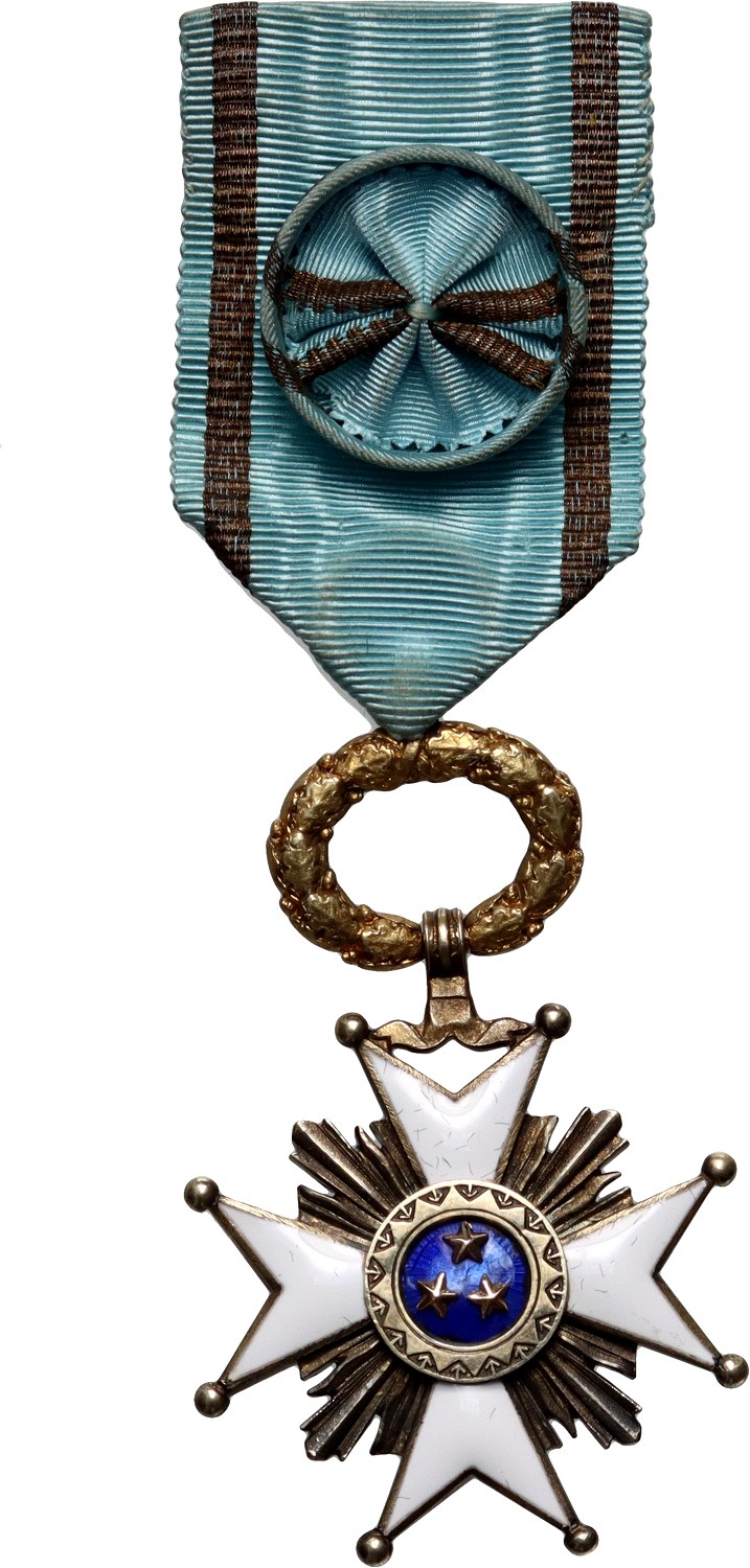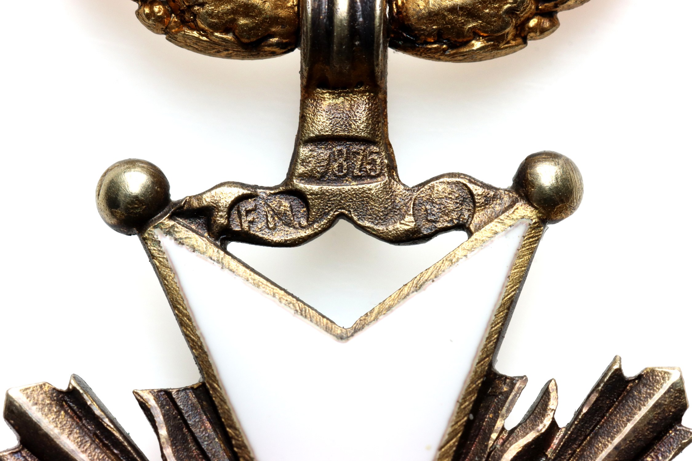 Dimensions without a ribbon 60 x 39 mm. At the junction of the cross and the wreath, the maker's initials F.M. and the state silver hallmark 875.