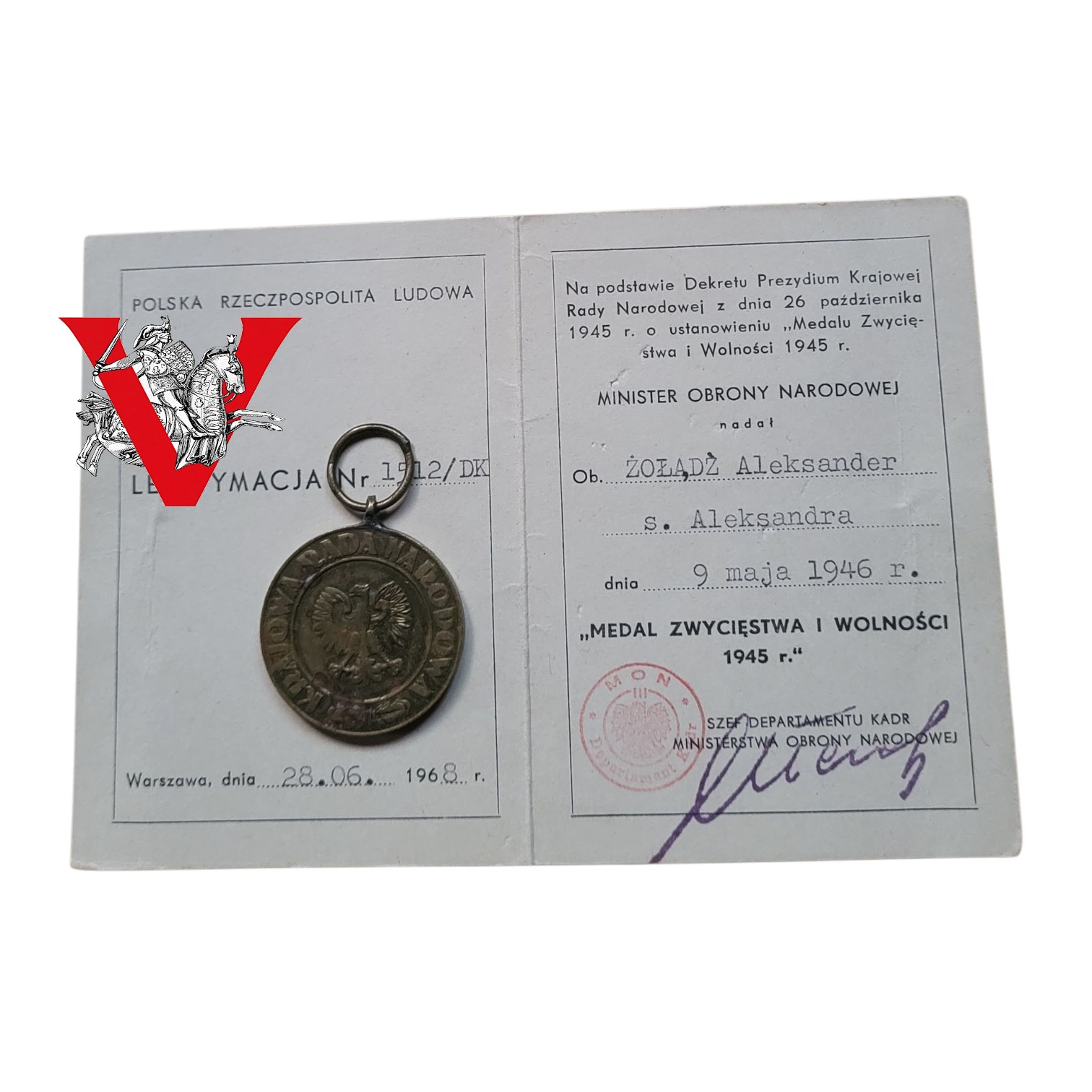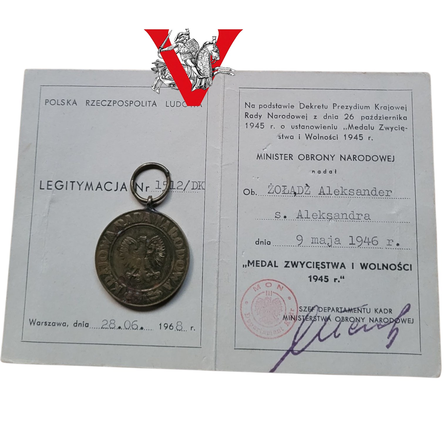 Medal Zwycięstwa i Wolności, Ndanie z 1946 roku, Legitymacja