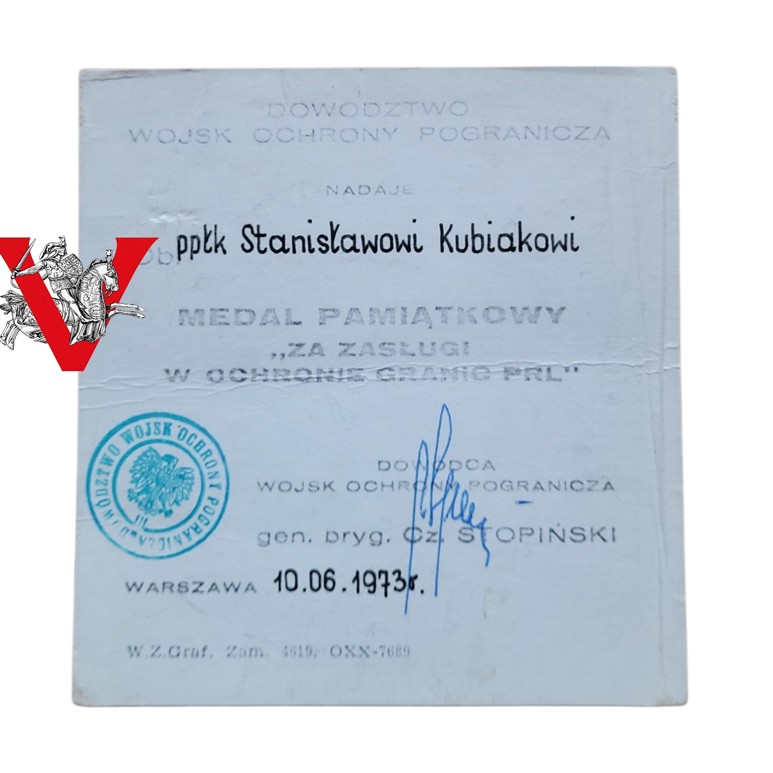Nadanie do medalu, dla Pułkownik , z podpisem generała Cz. Stopińskieo