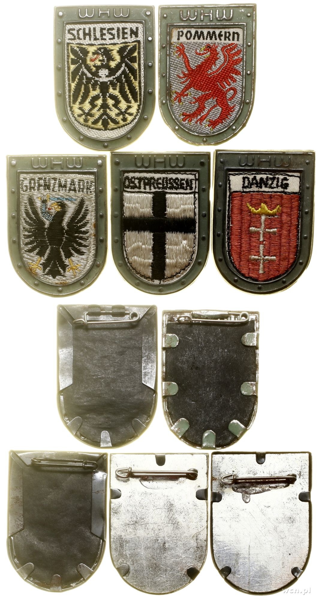 Wpinka z serii Herby okręgów pogranicznych (Grenzlandwappen) rozdawanej podczas zbiórki w dniach 17–18.10.1936 przeprowadzonej w całej Rzeszy, w skład zestawu wchodzi: Prusy Wschodnie (Ostpreussen), Gdańsk (Danzig), Pomorze (Pommern), Marchia Graniczna Poznańsko-Zachodniopruska (Grenzmark), Śląsk (Schlesien)