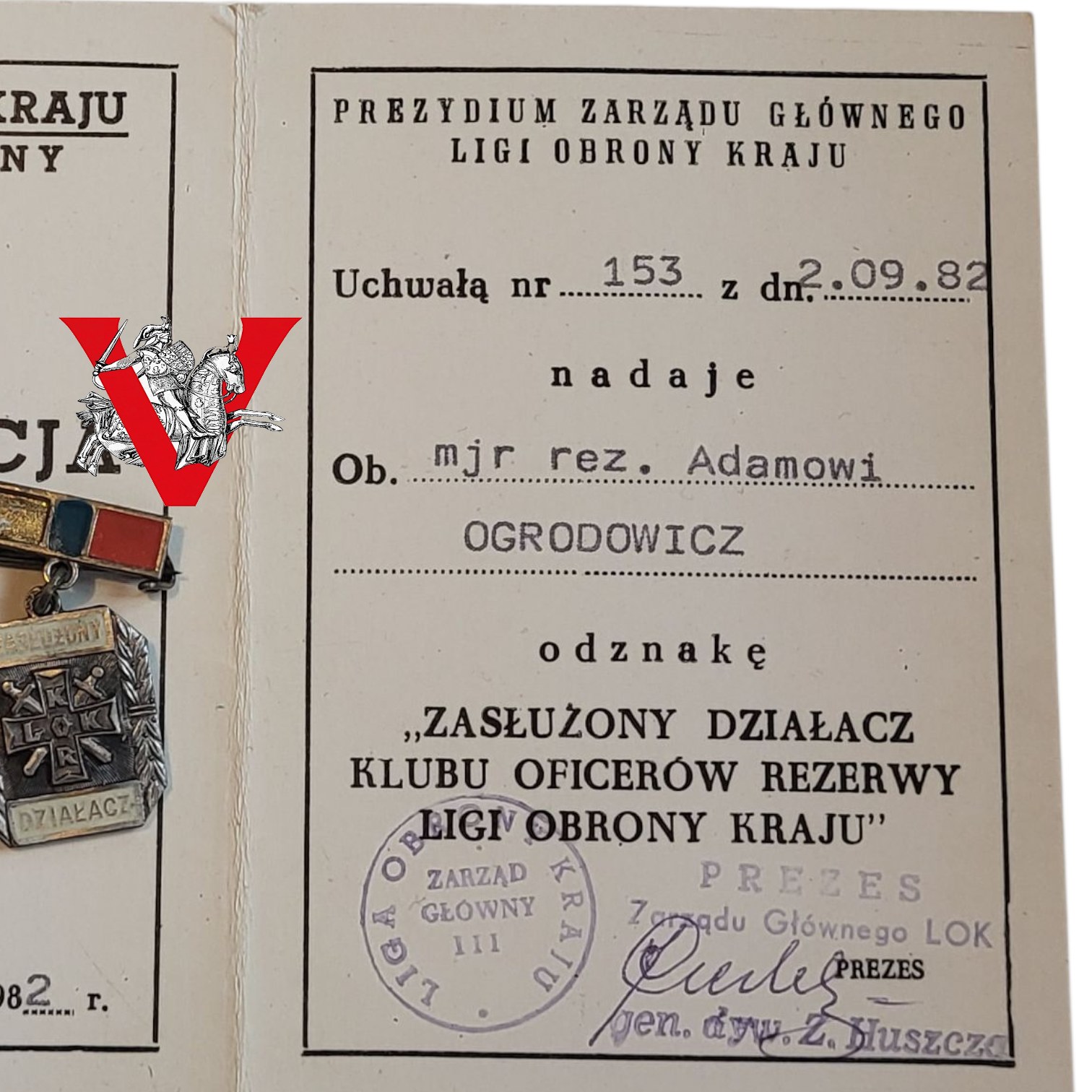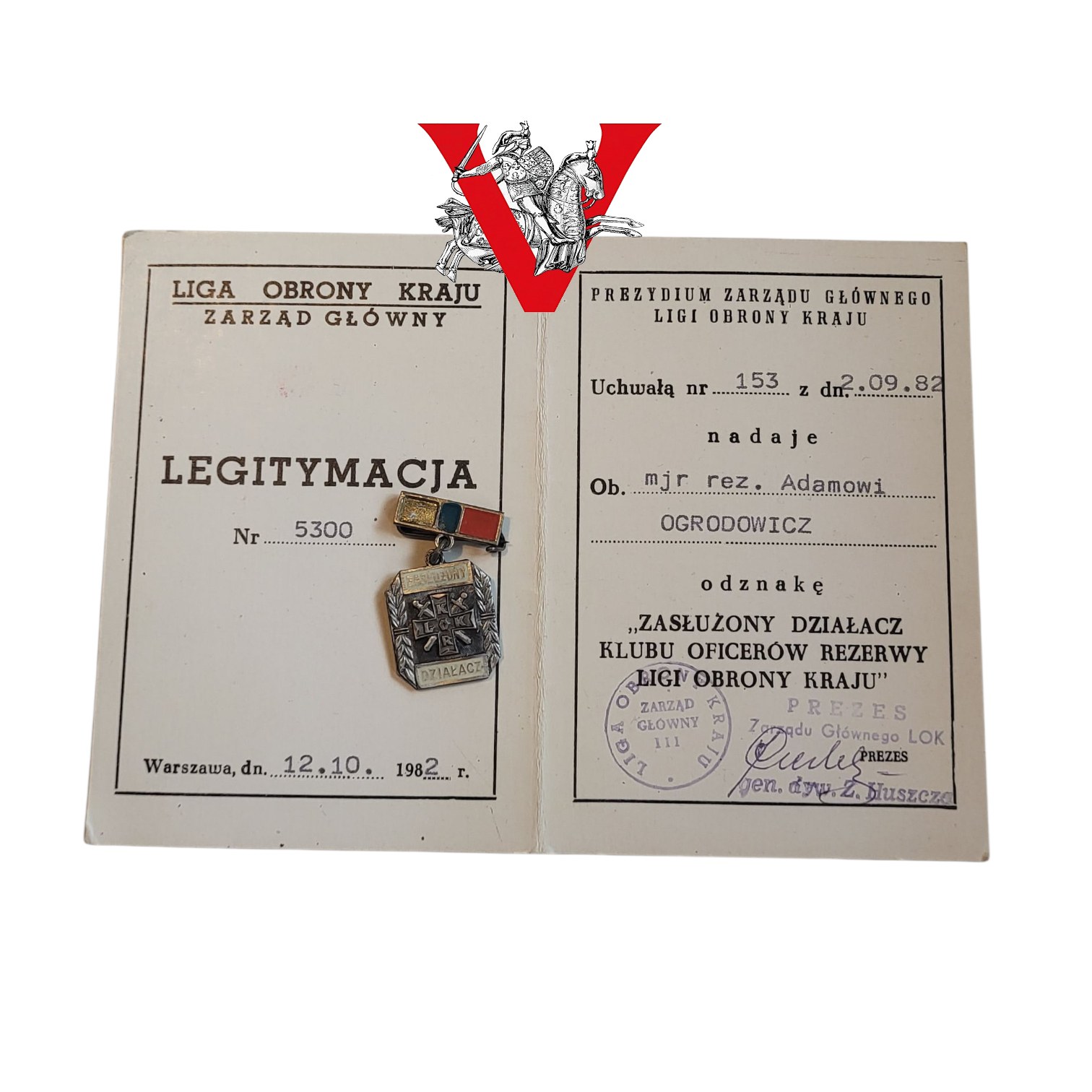 Odznaka z Legitymacją, Klub Oficerów Rezerwy LOK, Major Adam Ogrodowicz