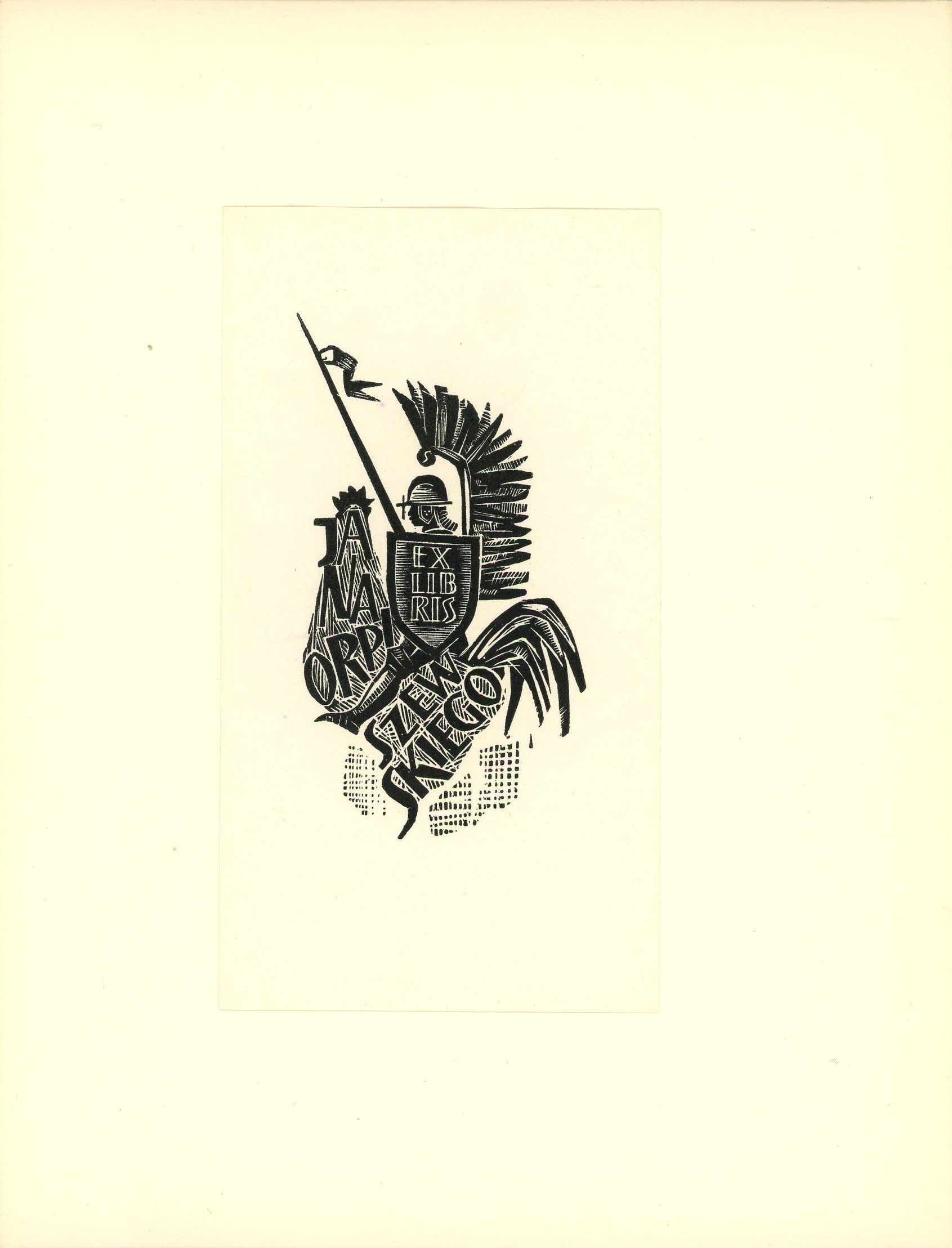 Ekslibris naklejony na karton o wym.: 19x14.5 cm. Stan bardzo dobry.