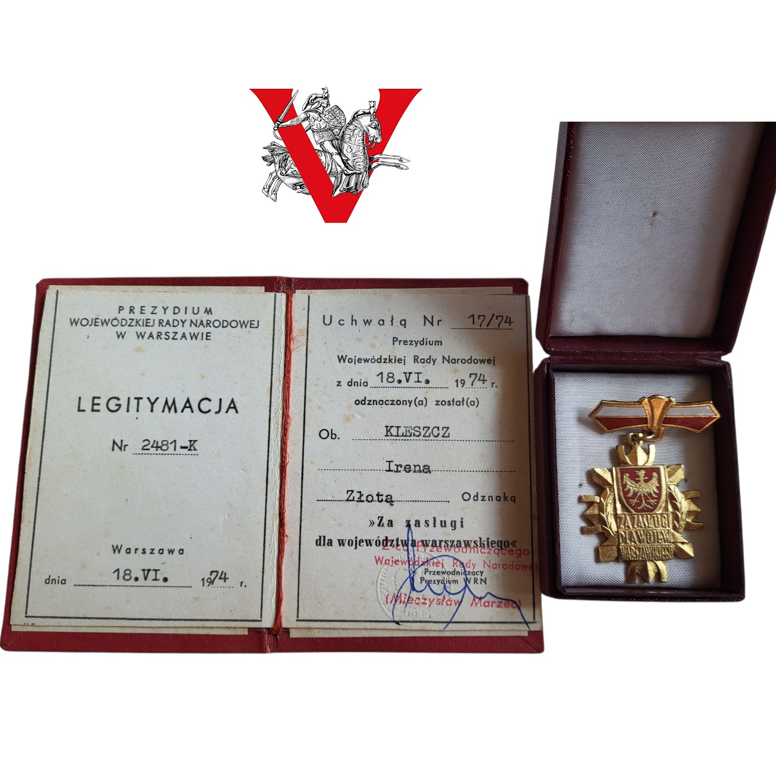 Złota Odznaka Za Zasługi dla Woj. Warszawskiego, Legitymacja, Kobieta
