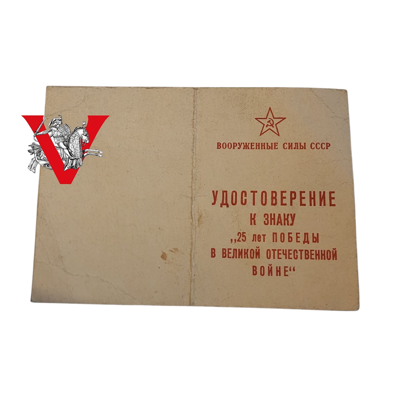 Legitymacja do odznaki "25 lecie zwycięstwa", dla kapitana weterana ,podpisana przez marszałka Związku Radzieckiego