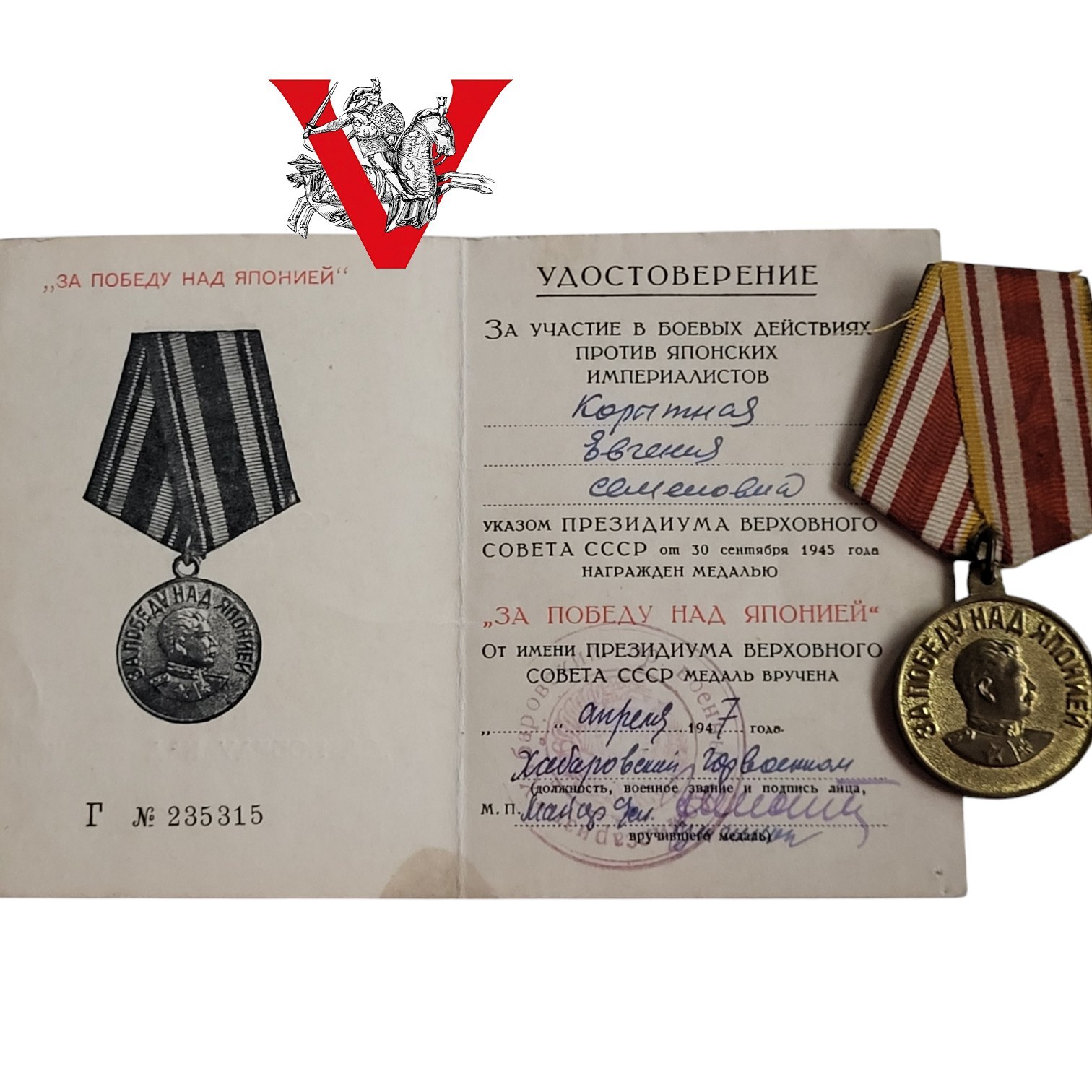 ZSRR, Armia Czerwona, Medal za Zwycięstwo nad Japonią, Legitymacja na Kobietę, Rzadkie odzaczenie