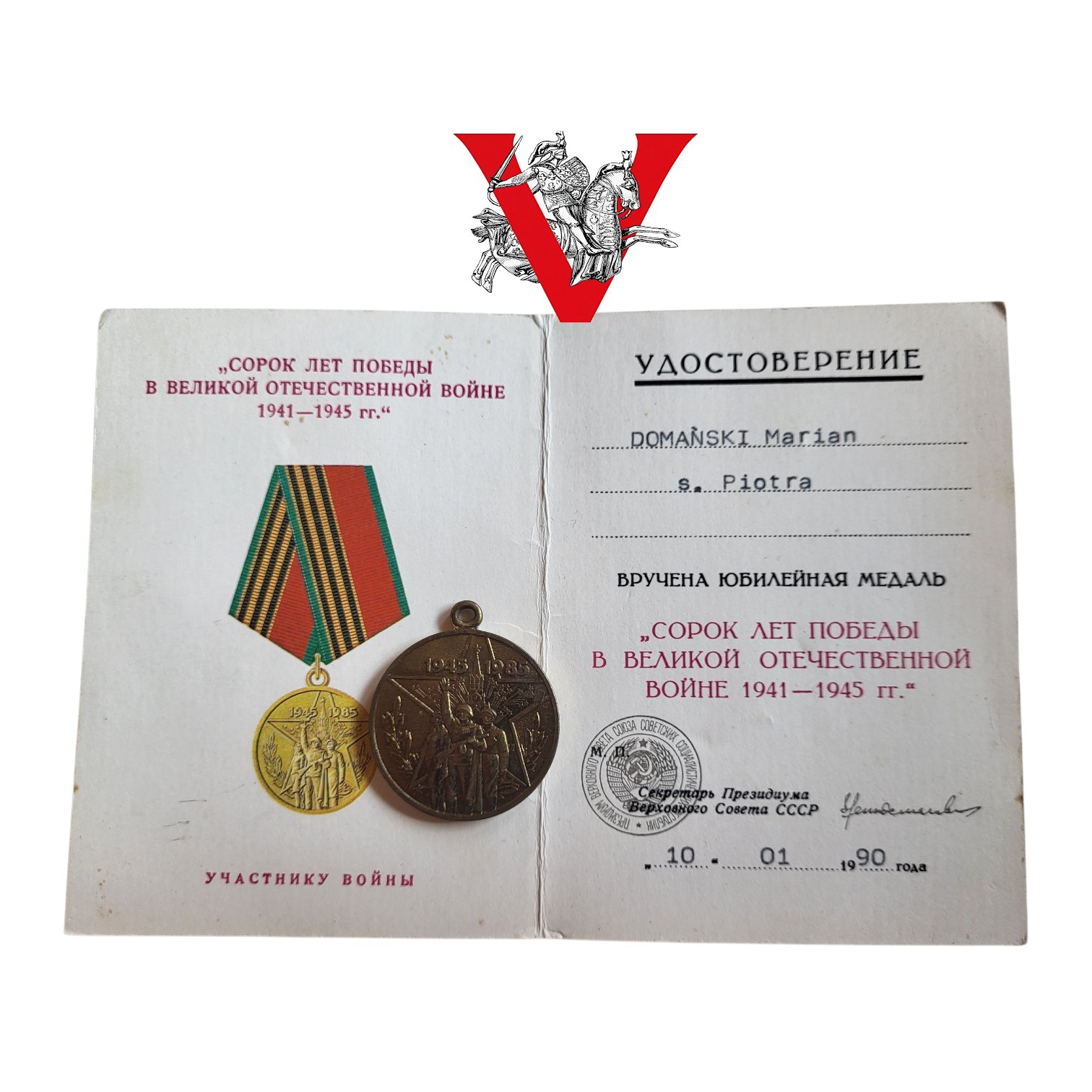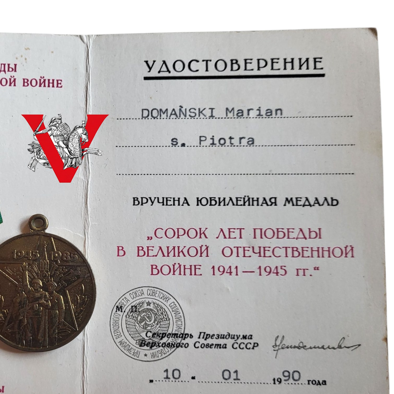 ZSRR, Rosja, 40 Lecie Zwycięstwa, Medal i Legitymacja , Domański Piotr, Polak