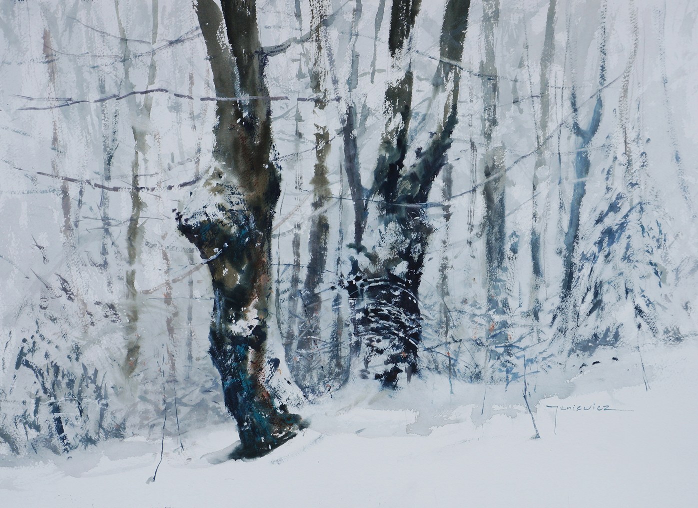 oprawiony w drewnianą ramę z passe-partout - 58 x 67 cm
