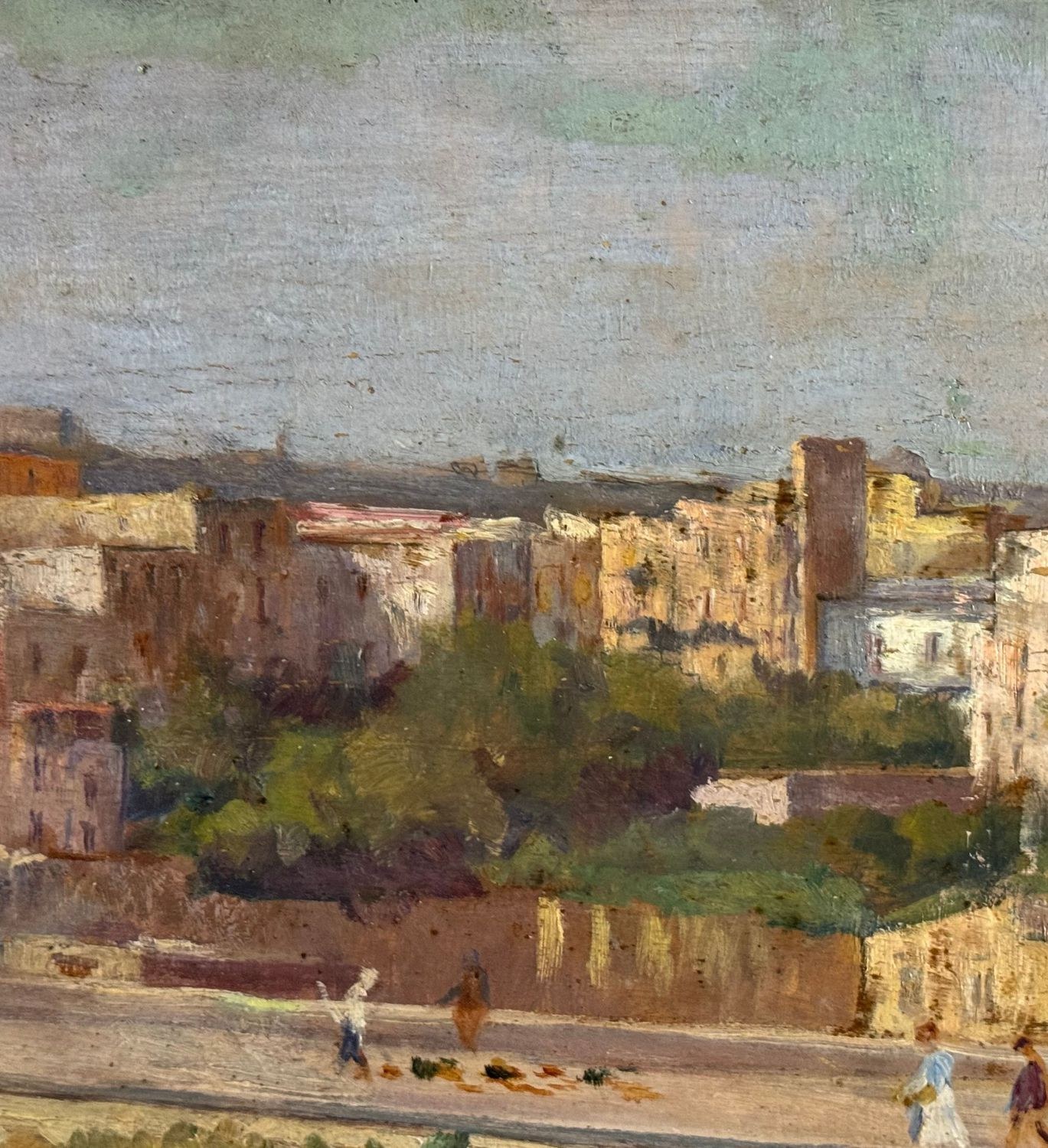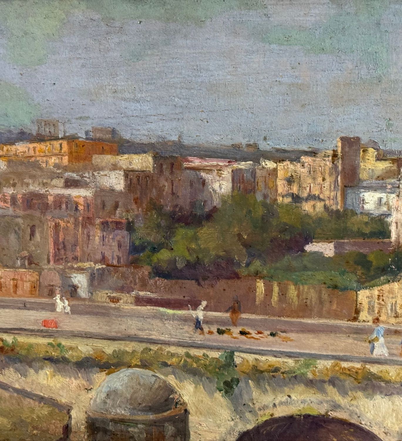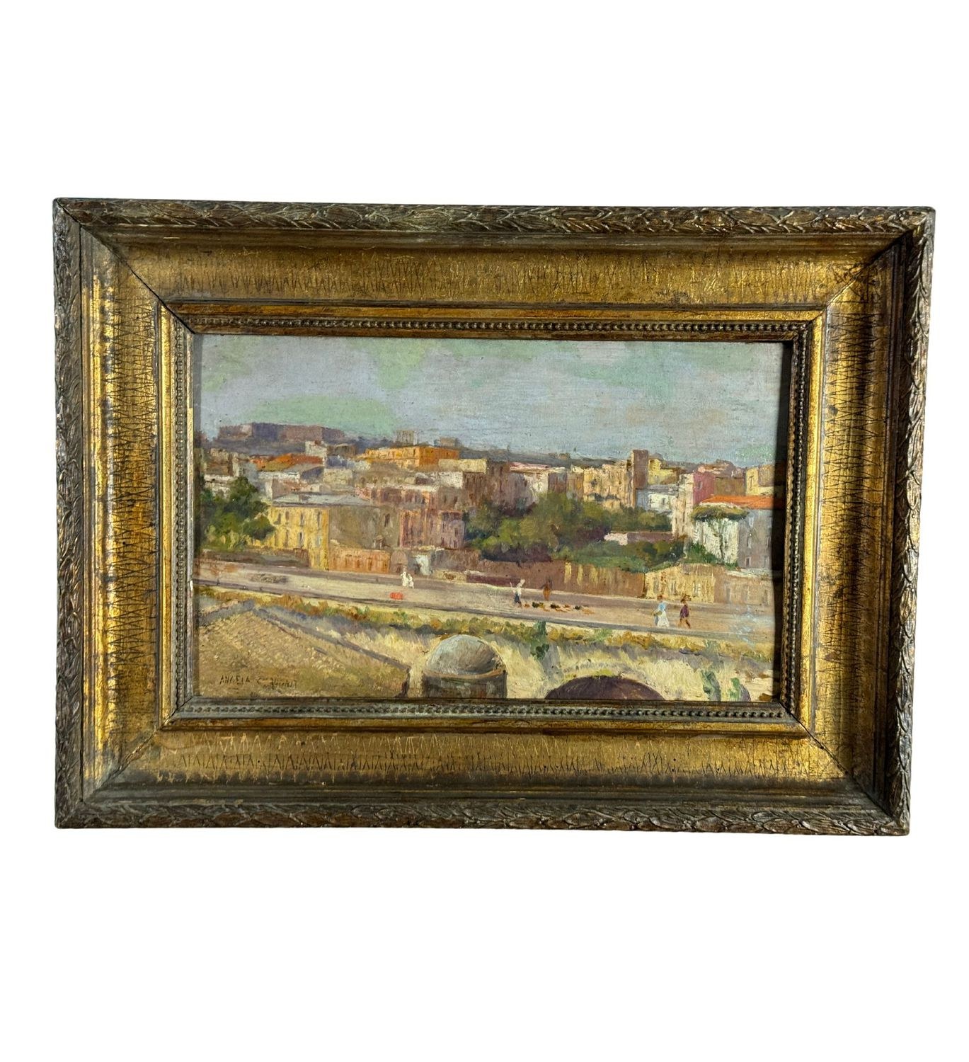 Oil painting on panel, 20th century, Italian school, depicting the Bridge at Sanità (Naples). Dimensions including frame: 67x49 cm. Dimensions of the panel: 49x29.5 cm. Signed in the lower left corner by Angela Carugati. The artwork is in good condition.