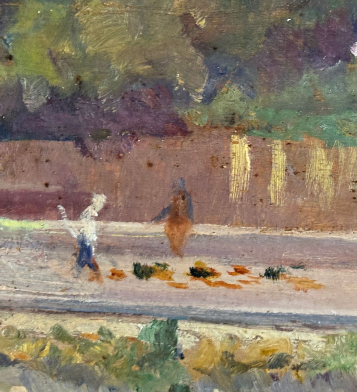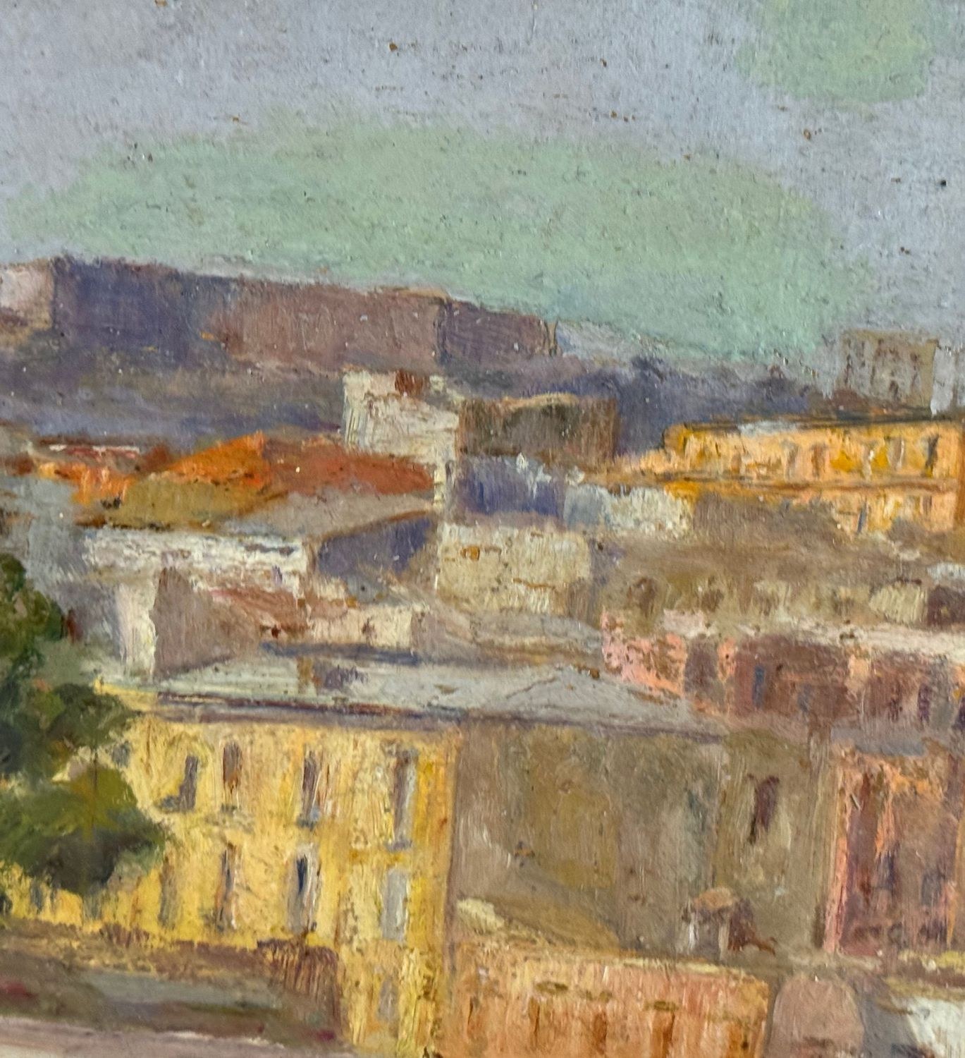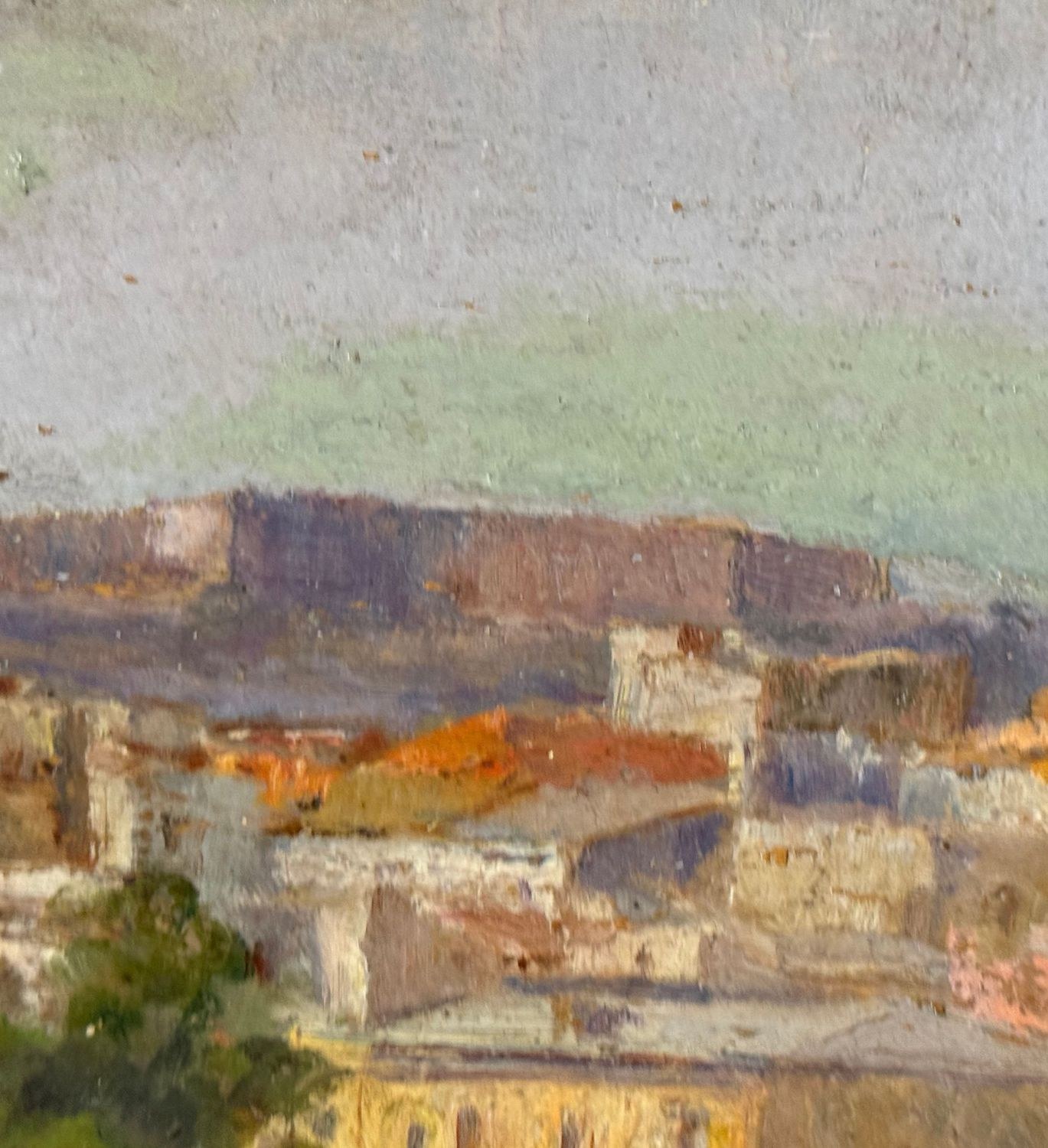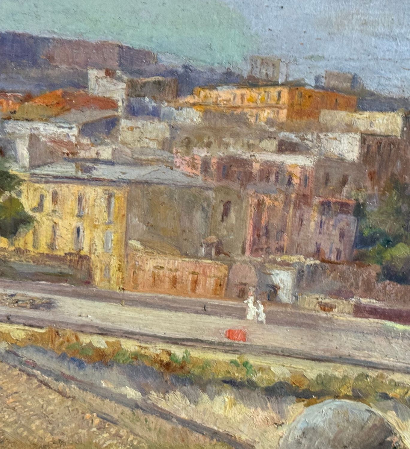 Oil painting on panel, 20th century, Italian school, depicting the Bridge at Sanità (Naples). Dimensions including frame: 67x49 cm. Dimensions of the panel: 49x29.5 cm. Signed in the lower left corner by Angela Carugati. The artwork is in good condition.