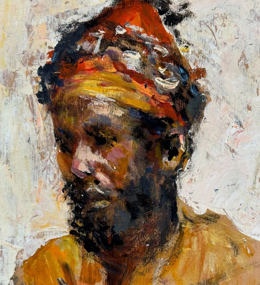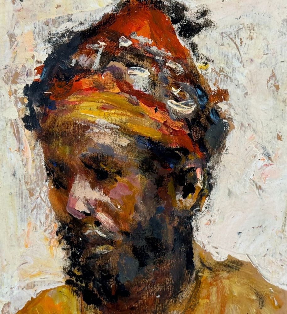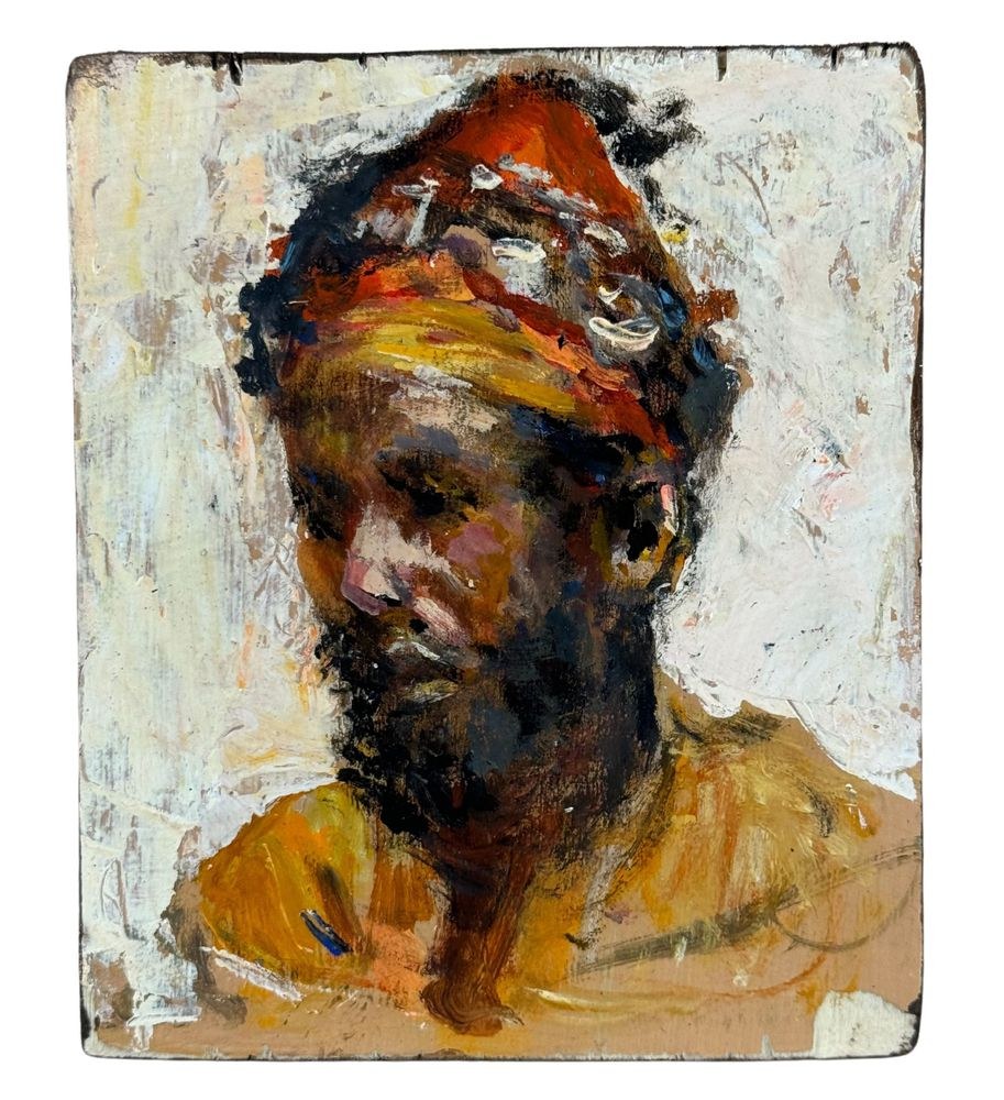 Oil painting on panel, 20th-century Italian school, depicting a Portrait of a Man. Dimensions: 13x15 cm. By an anonymous artist. The piece is in good condition.