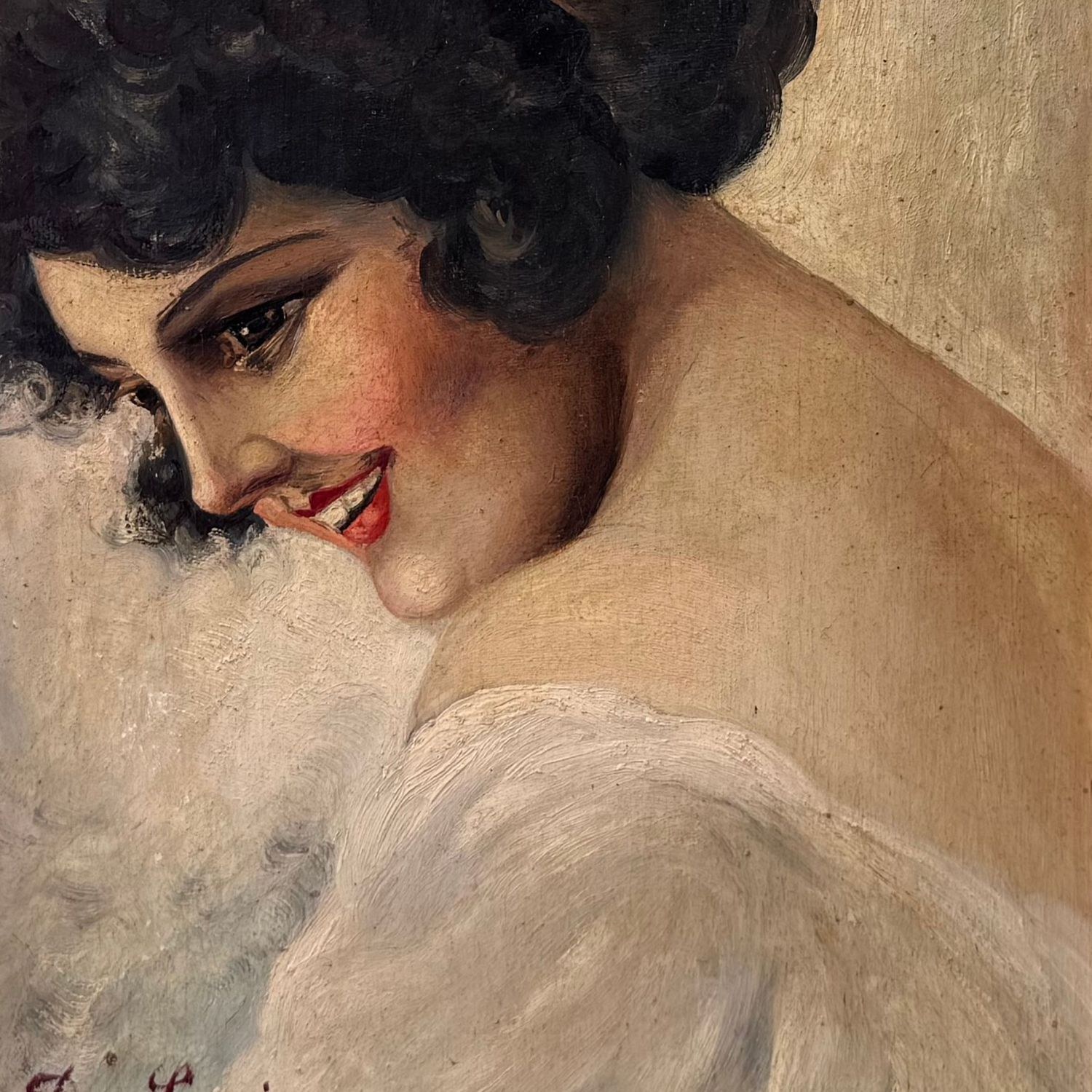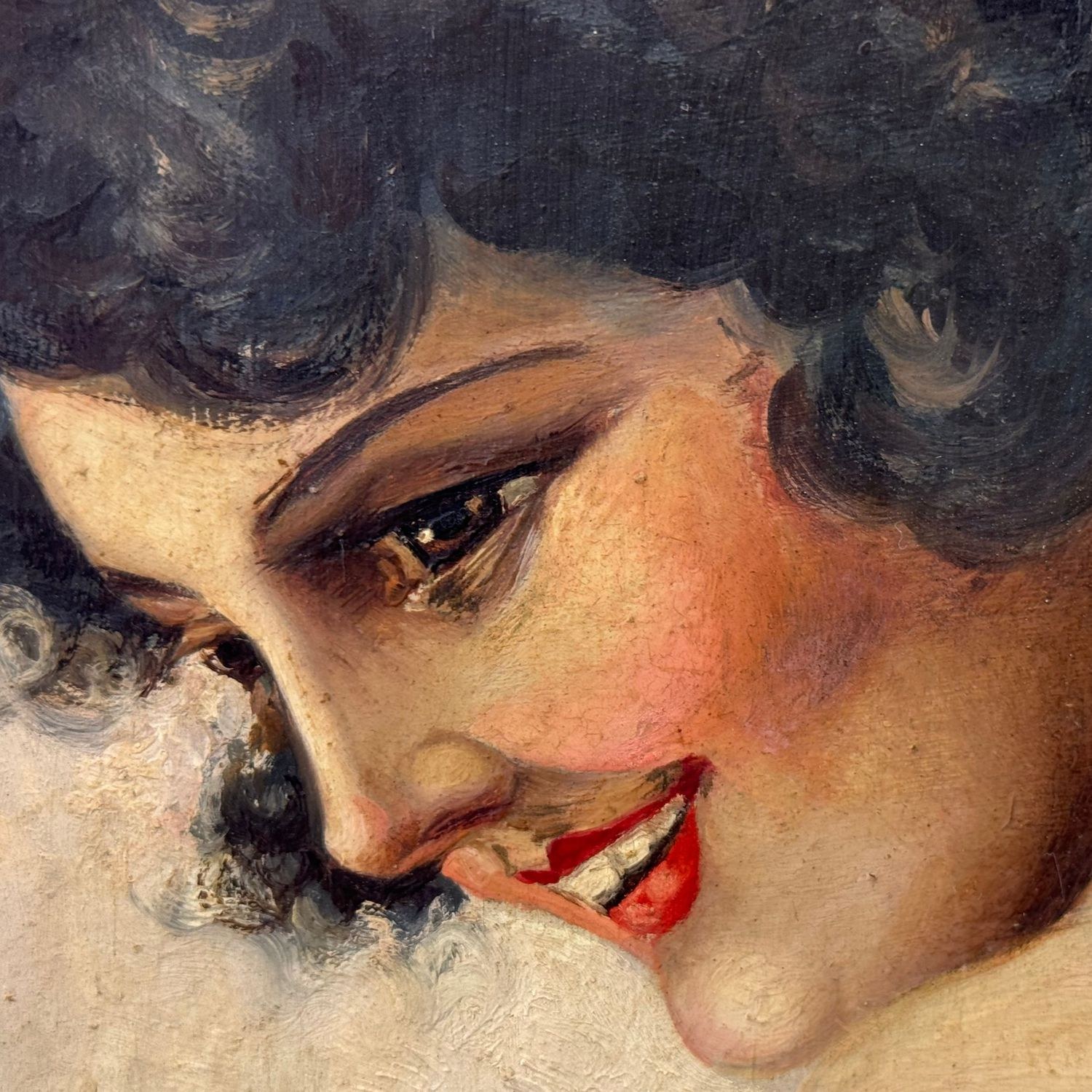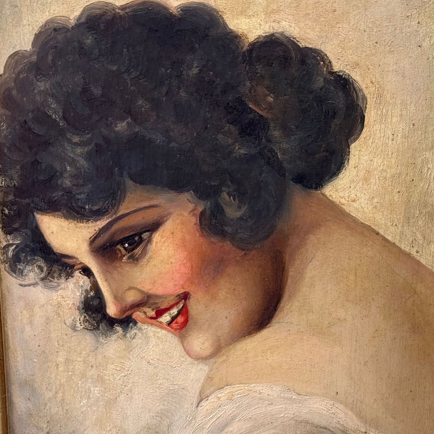 Oil painting on panel, from the 20th century depicting a Portrait of a model.
